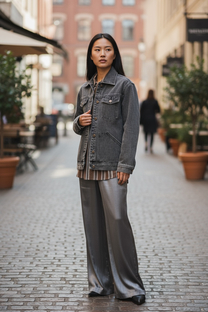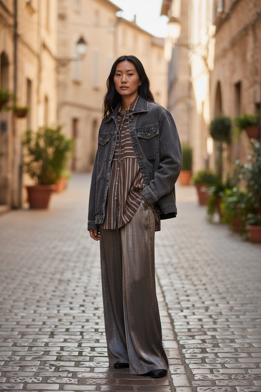 Δώστε λάμψη και κίνηση στην εμφάνισή σας με αυτή τη μεταλλιζέ παντελόνα από αέρινο ύφασμα. Το λάστιχο στη μέση προσφέρει άνεση και τέλεια εφαρμογή, ενώ η ροή του υφάσματος δημιουργεί κομψότητα σε κάθε βήμα. Ιδανική για βραδινές εξόδους ή στιγμές που θέλετε να ξεχωρίσετε με στυλ και άνεση.
