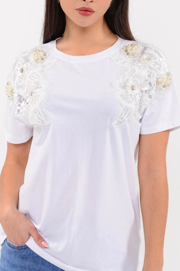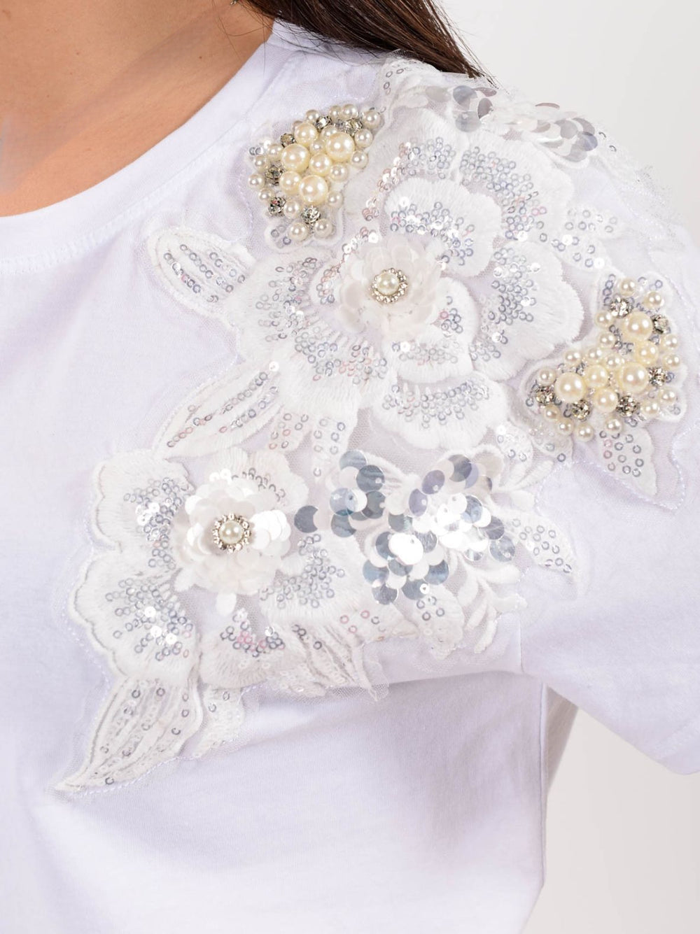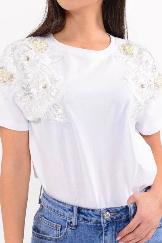 Charizma Μπλούζα T-shirt Κέντημα Στρας Λευκό