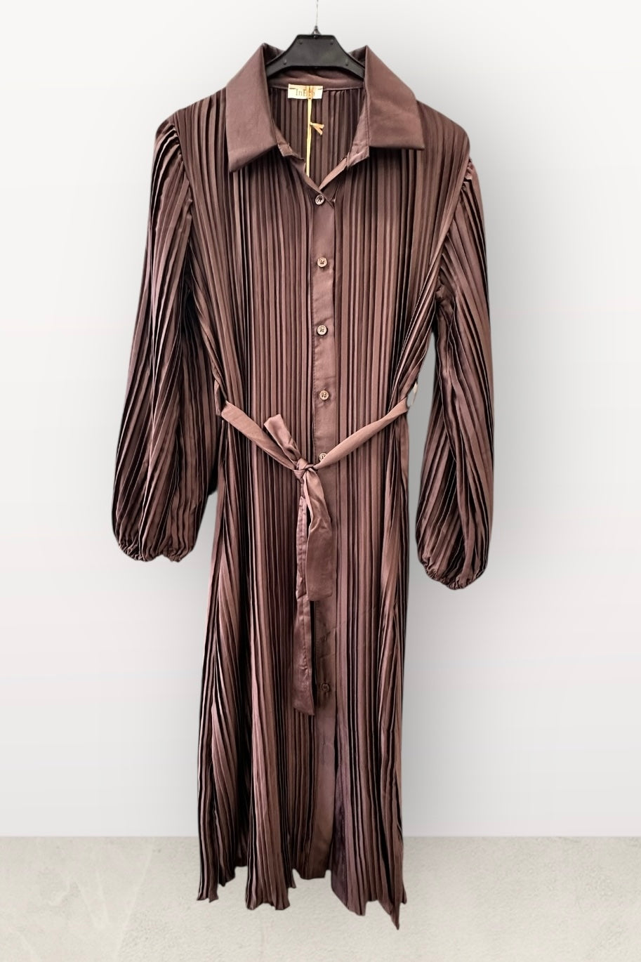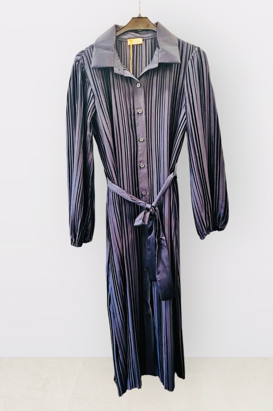 Ένα κομψό και θηλυκό φόρεμα που συνδυάζει άνεση και στυλ. Το πλισέ σχέδιο χαρίζει κίνηση και αέρινη αίσθηση, ενώ το κλείσιμο με κουμπάκια μπροστά δίνει διαχρονική κομψότητα. Η ζώνη στη μέση τονίζει τη σιλουέτα, προσφέροντας ισορροπία ανάμεσα στη θηλυκότητα και τη φινέτσα. Ιδανικό για καθημερινές εμφανίσεις στο γραφείο αλλά και για πιο ιδιαίτερες περιστάσεις.