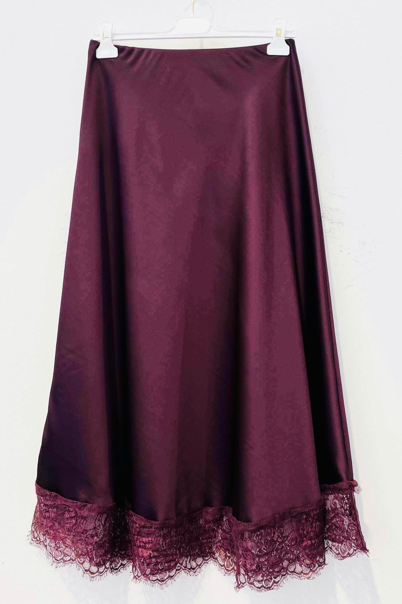 Charizma - Σατέν Μακριά Φούστα με Δαντέλα στο Τελείωμα Μπορντό