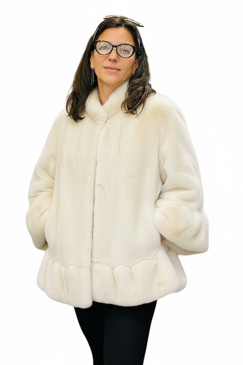Charizma - Συνθετική Γούνα με Βολάν στα τελειώματα, Τσέπες σε Στυλ Κάπας Μπεζ