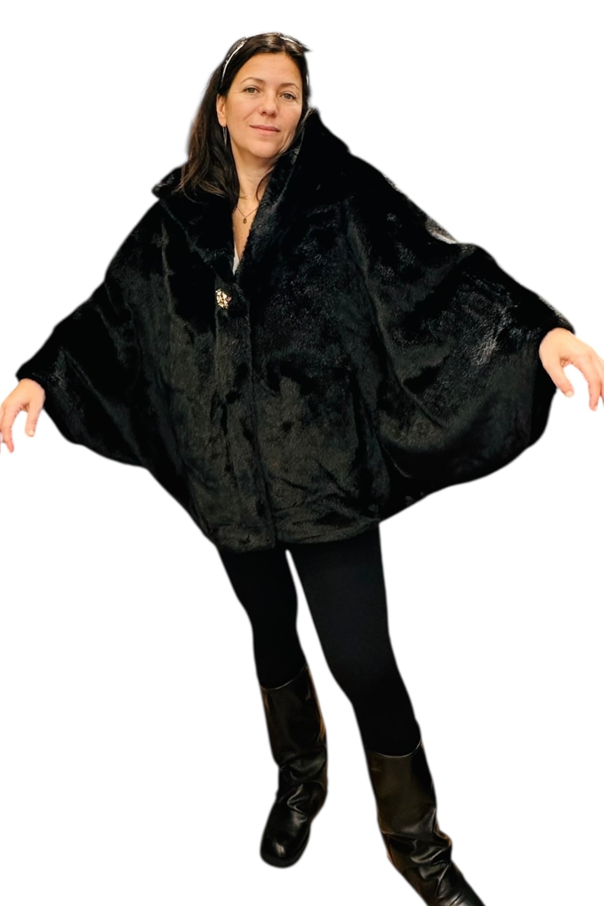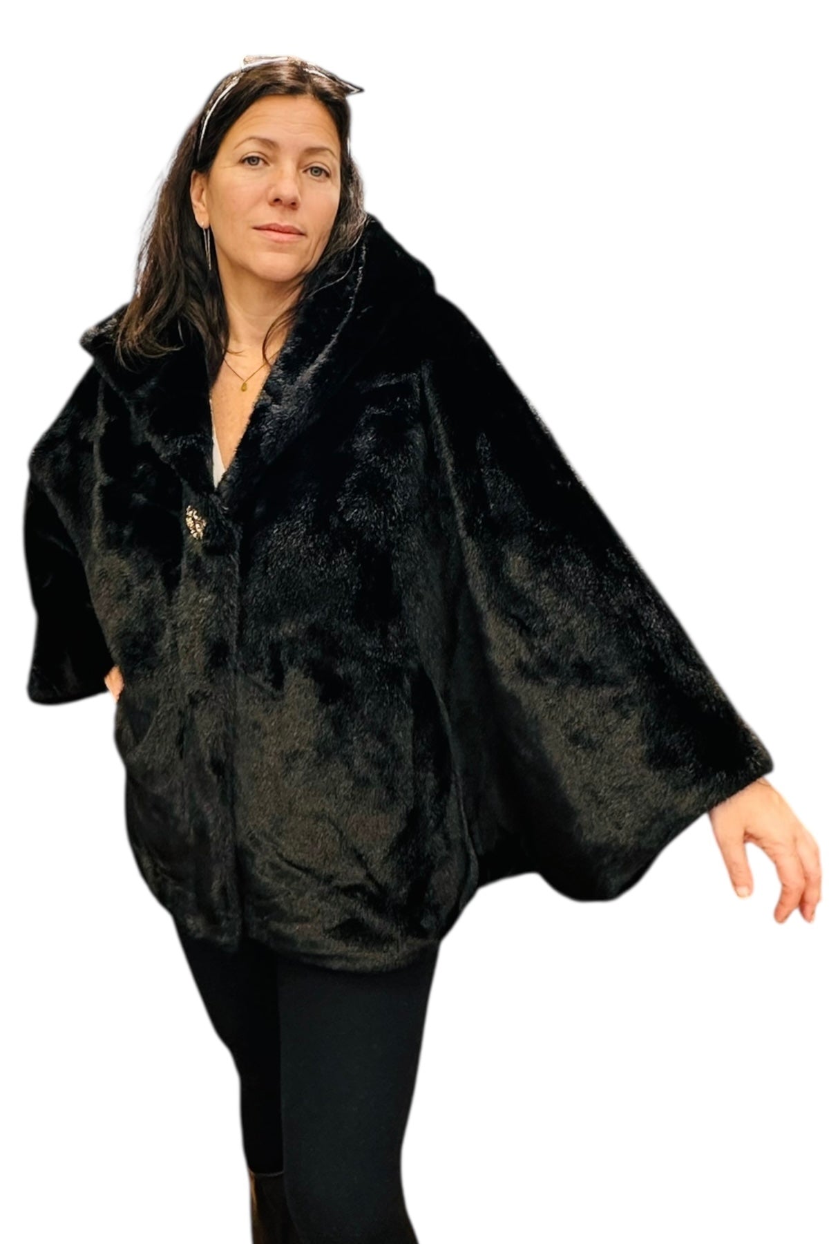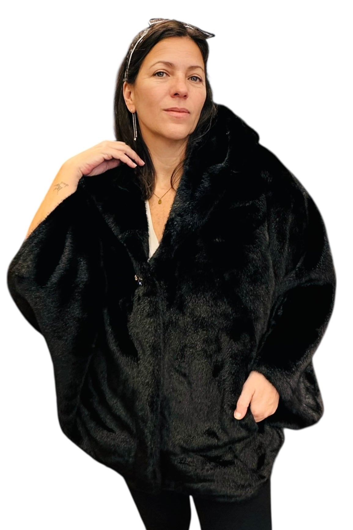 Charizma - Συνθετική Γούνα με Κουκούλα, Τσέπες σε Στυλ Κάπας Μαύρη