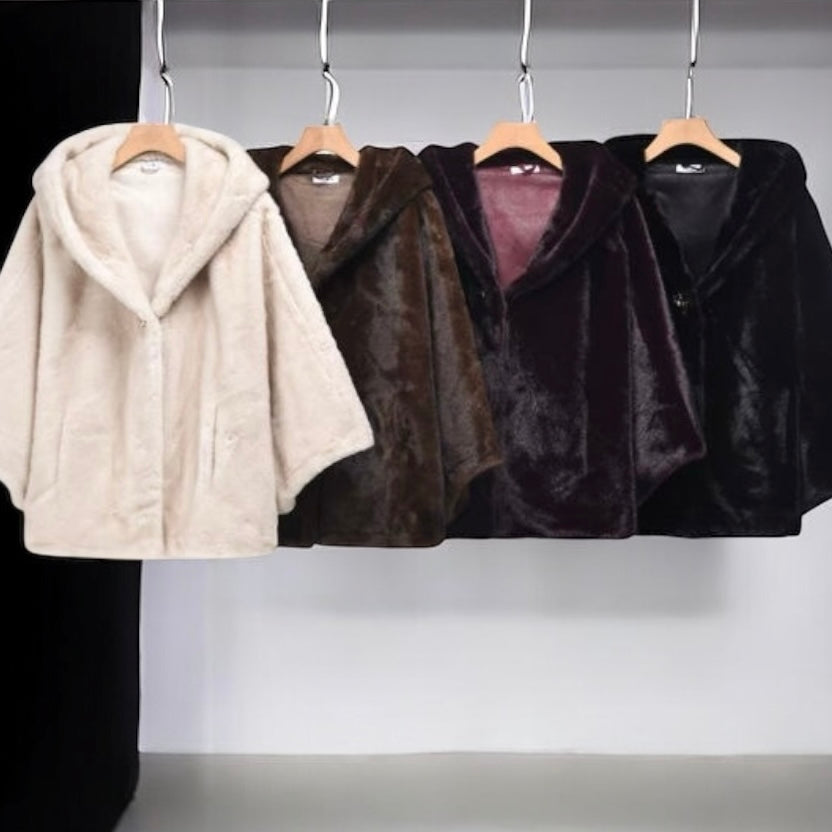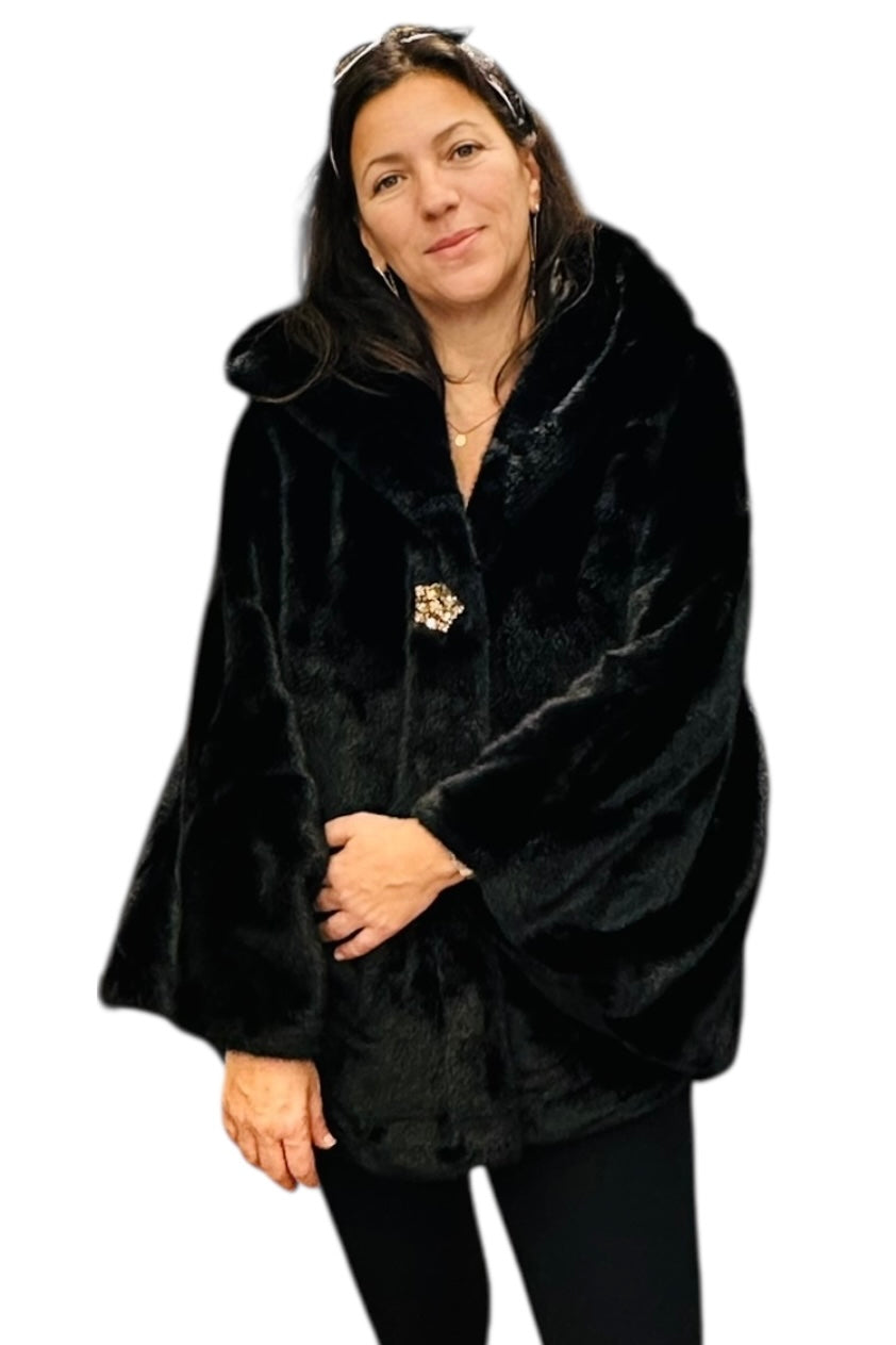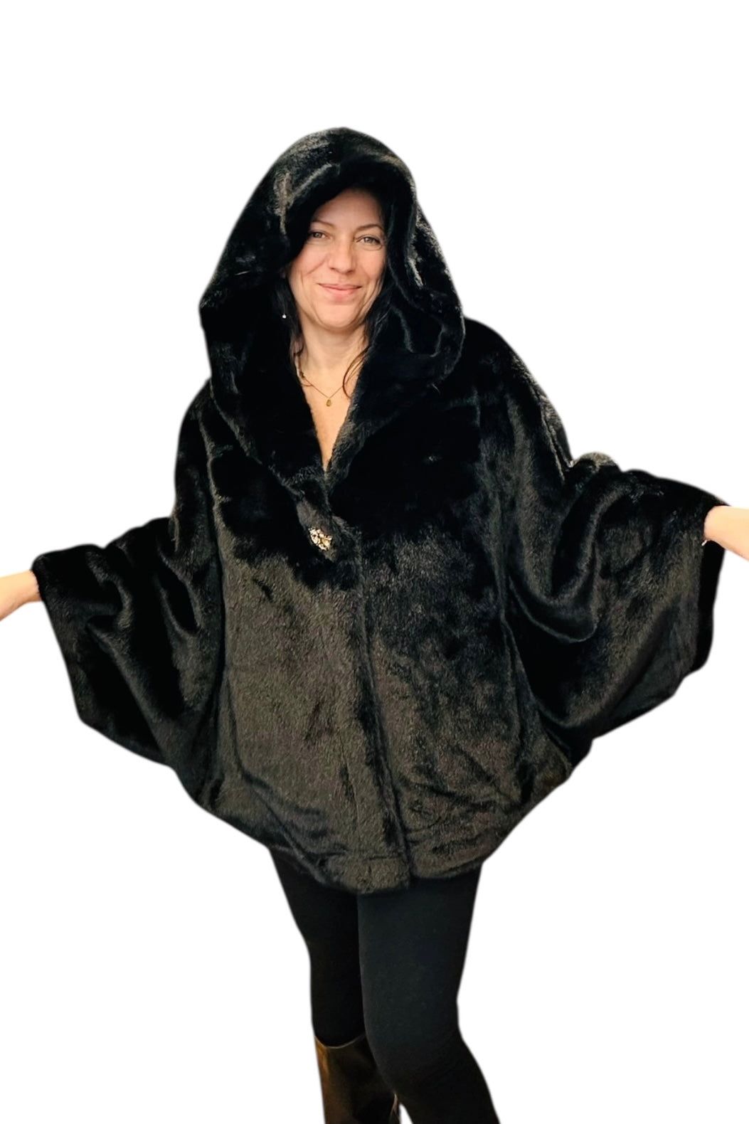 Charizma - Συνθετική Γούνα με Κουκούλα, Τσέπες σε Στυλ Κάπας Μαύρη