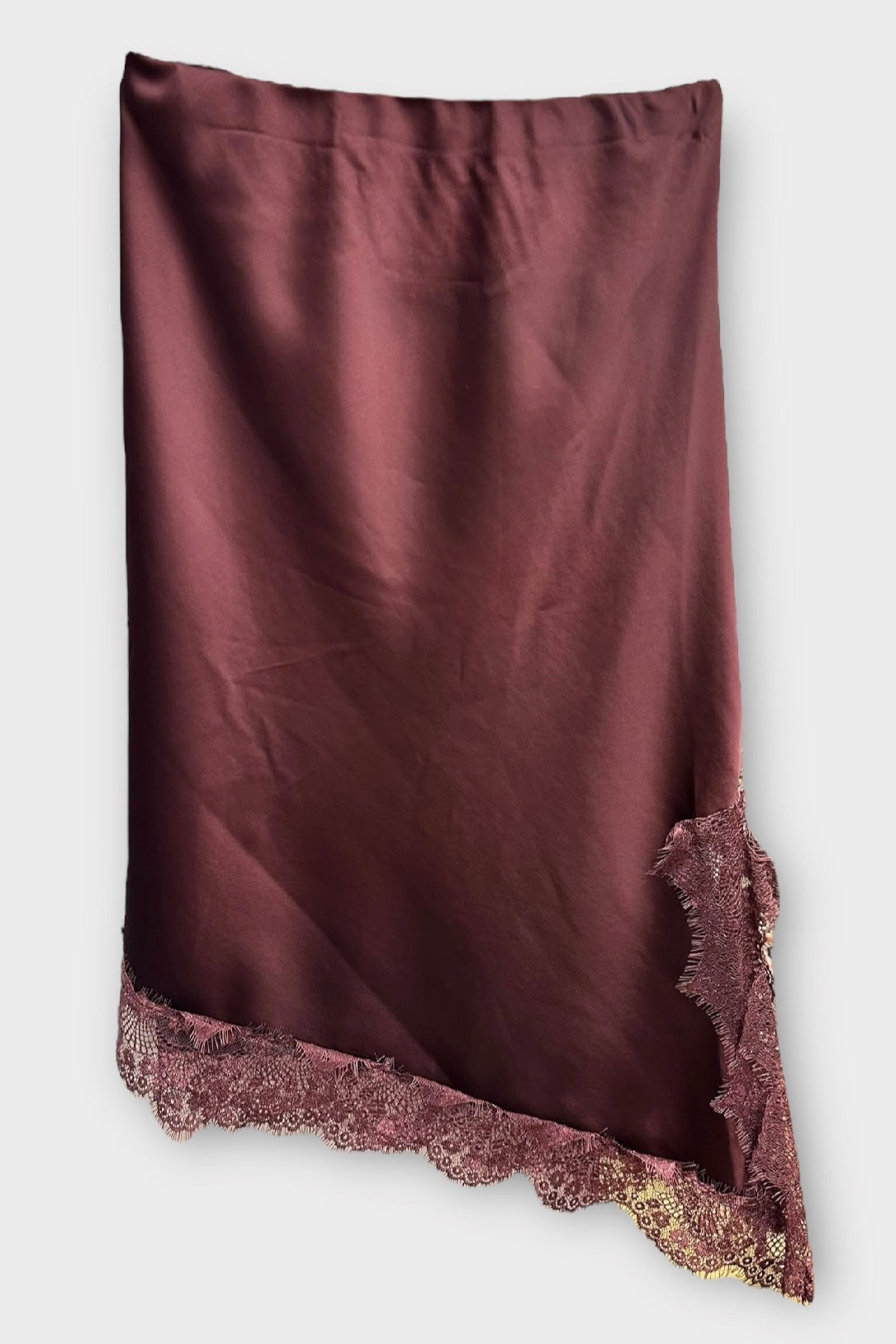 Charizma - Φούστα Σατέν Με Δαντέλα Και Σκίσιμο Μπορντό
