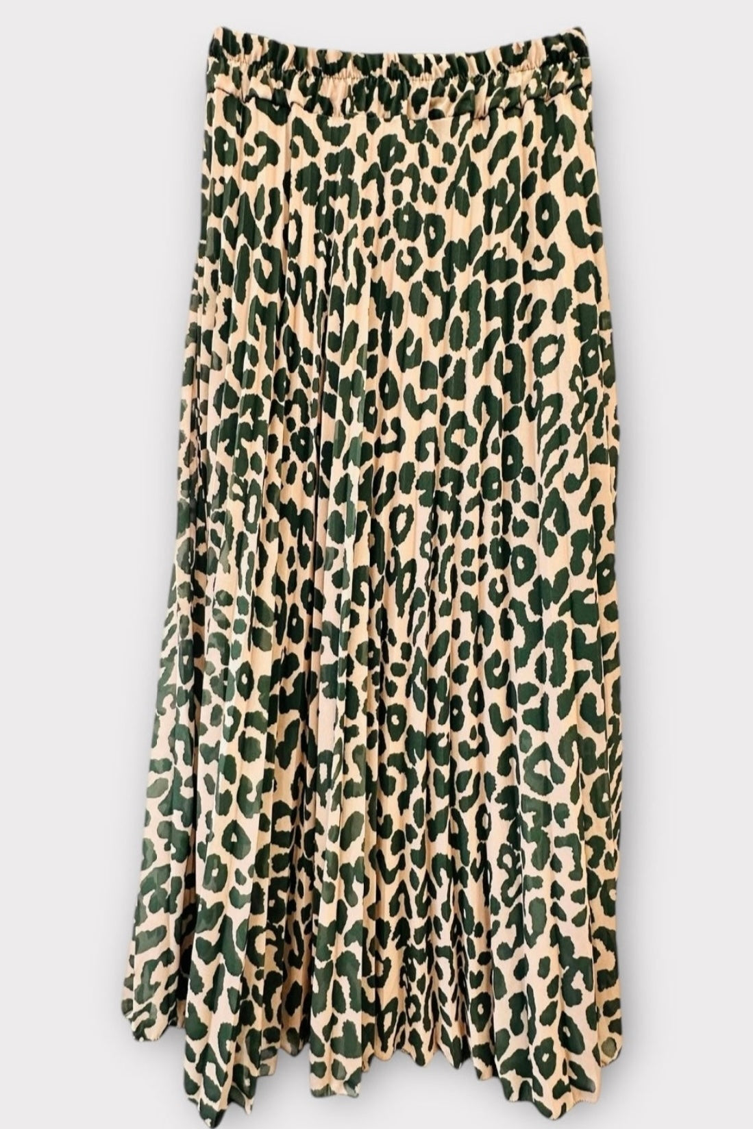 Charizma - Φούστα Animal print Μπεζ & Πράσινο Μάξι Πλισέ