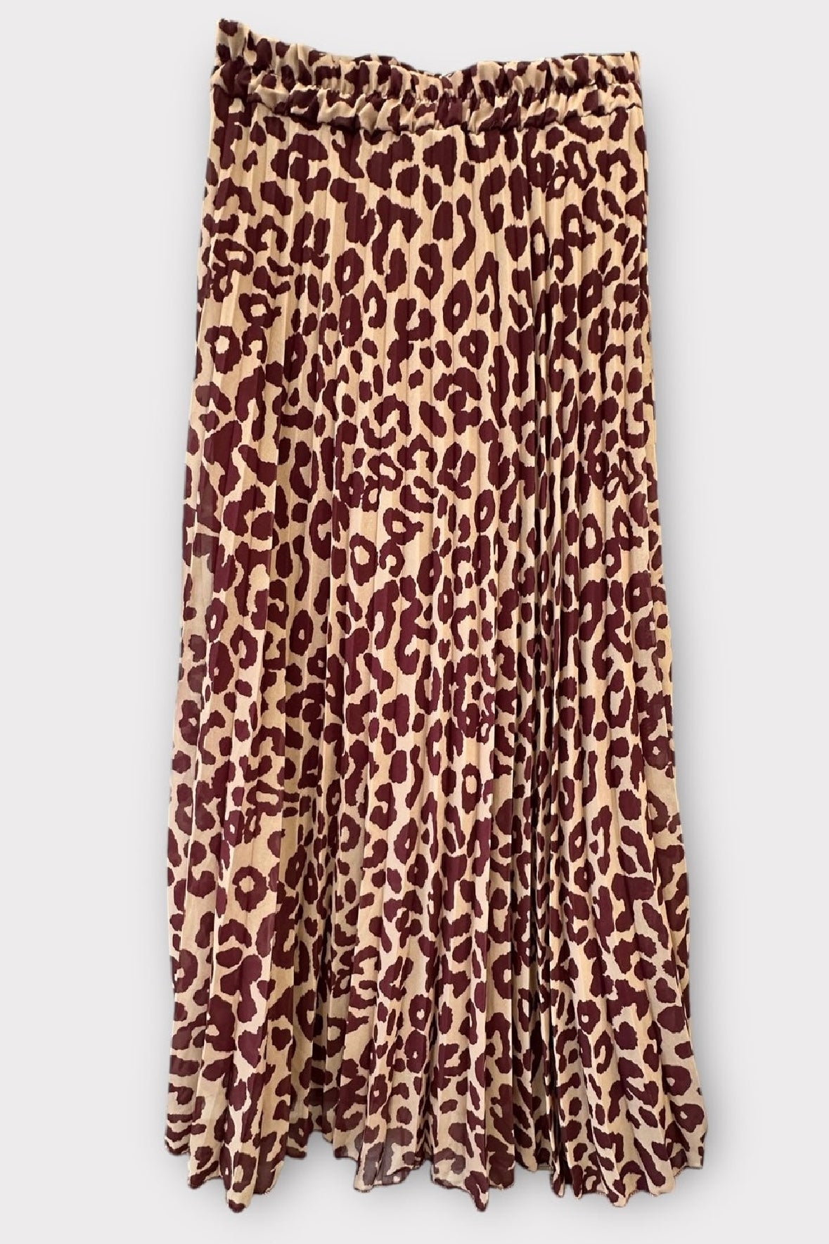 Charizma - Φούστα Animal print Μπορντό & Κάμελ Μάξι Πλισέ