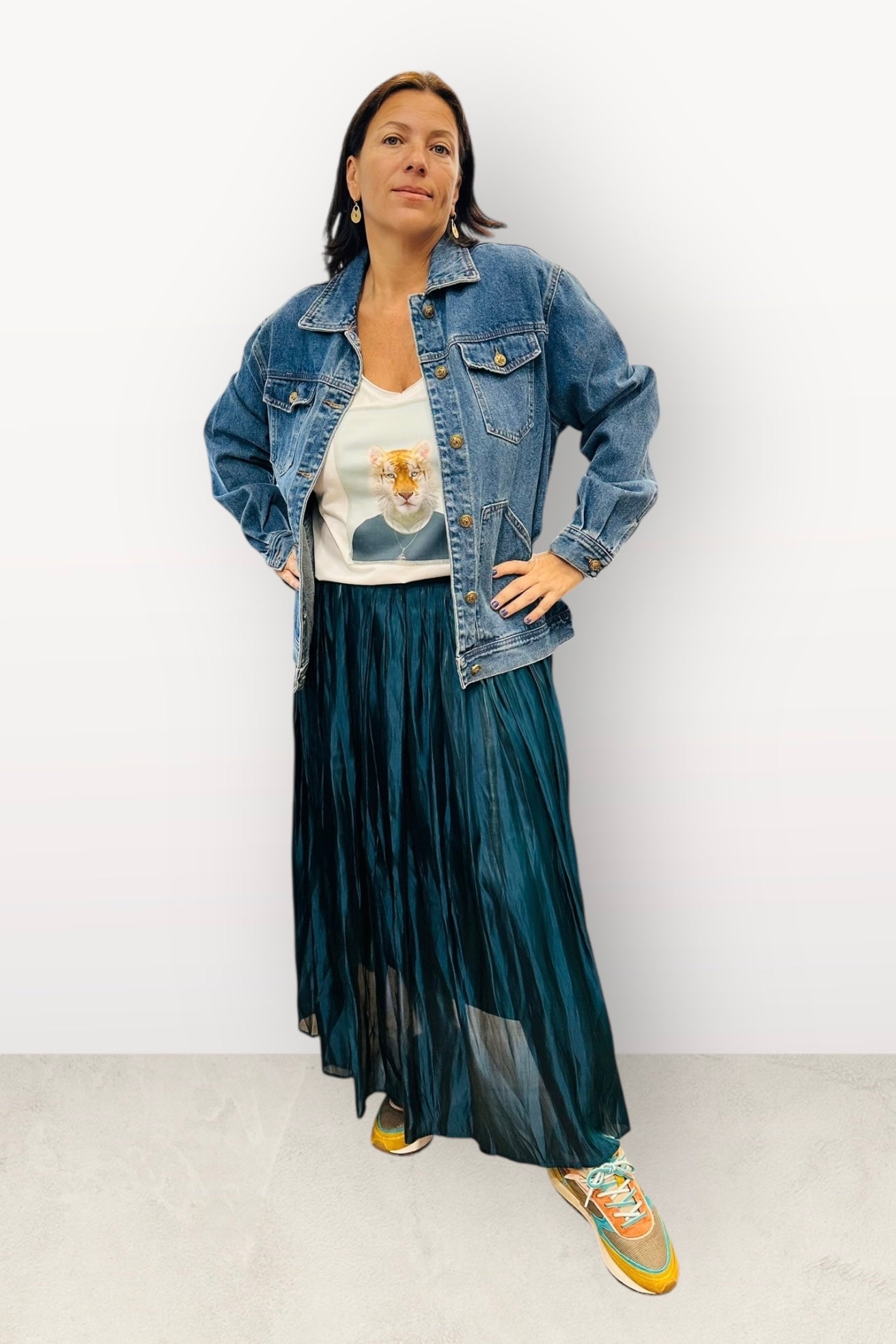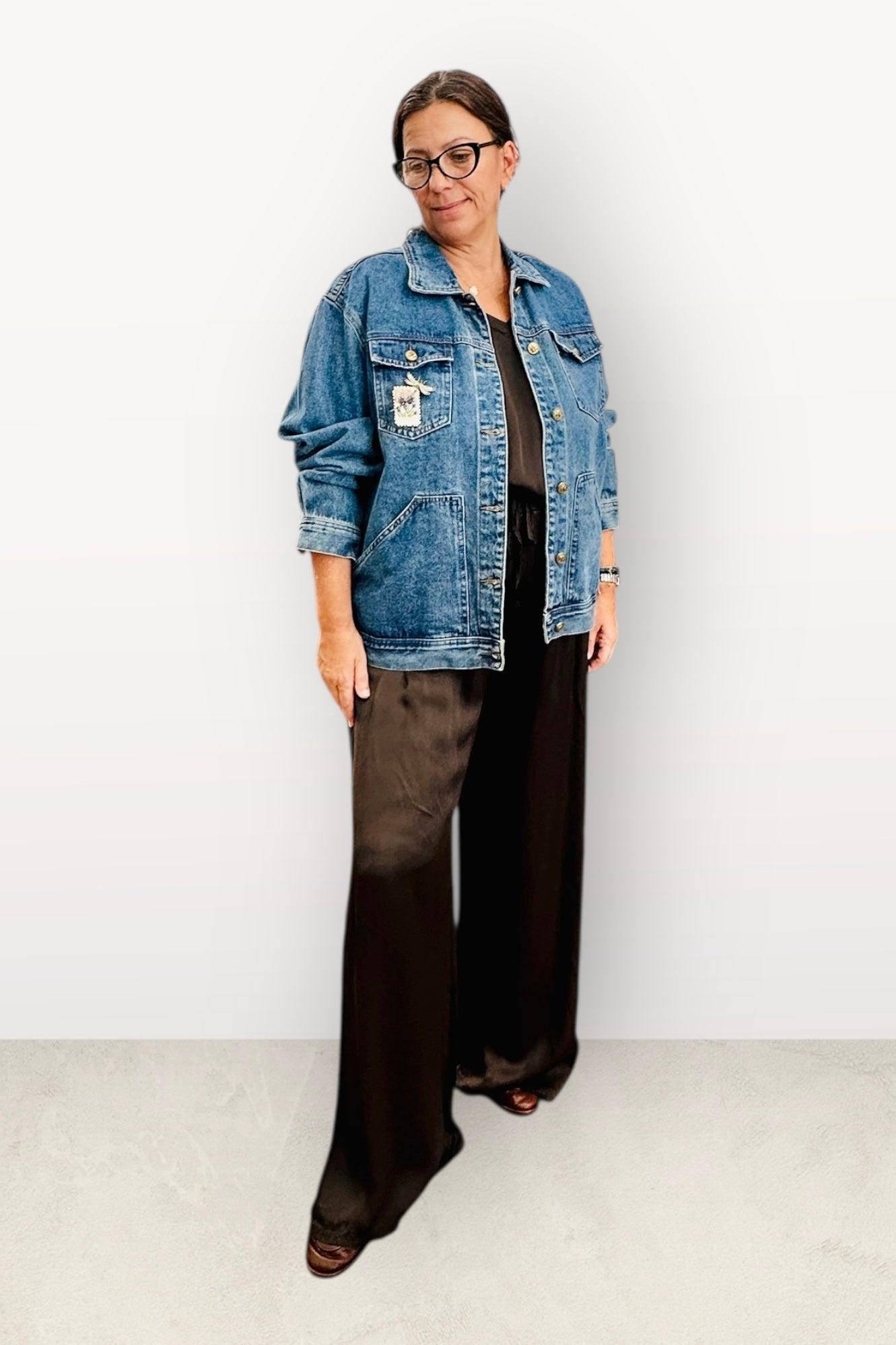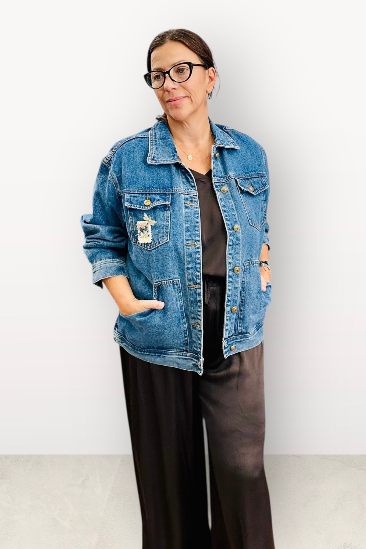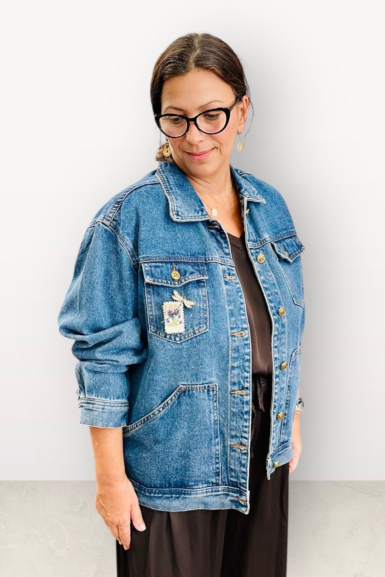 Με ιδιαίτερο σχεδιασμό που ξεχωρίζει, διαθέτει ασύμμετρες (στραβές) τσέπες στο στήθος και μεταλλικά κουμπιά σε όλο το μπροστινό μέρος. Το διαχρονικό denim αποκτά νέα διάσταση, προσφέροντας στιλ με χαρακτήρα.