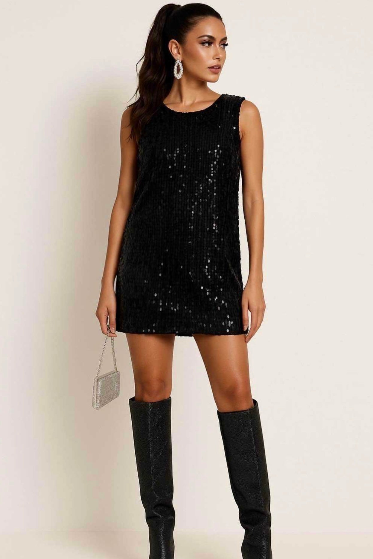 Λάμψτε σε κάθε βραδινή σας έξοδο με αυτό το μαύρο κοντό φόρεμα! Διαθέτει κρόσια που προσδίδουν κίνηση και ζωντάνια, παγιέτες που τραβούν τα βλέμματα και ανοιχτή πλάτη για μια σέξι αλλά κομψή εμφάνιση. Ιδανικό για πάρτι, ρεβεγιόν ή ειδικές περιστάσεις, προσφέροντας άνεση και μοναδικό στυλ.