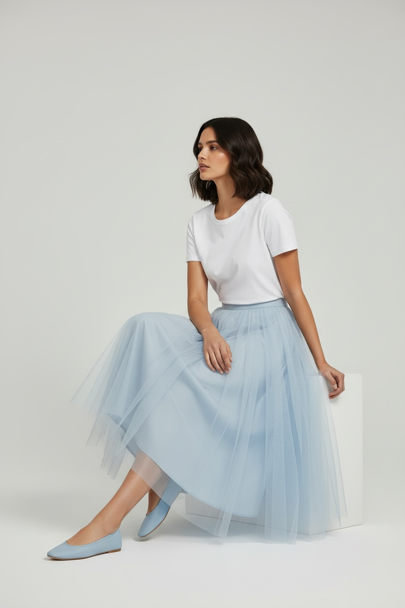 Μακριά φούστα από τούλι για ρομαντική και αέρινη αισθητική.