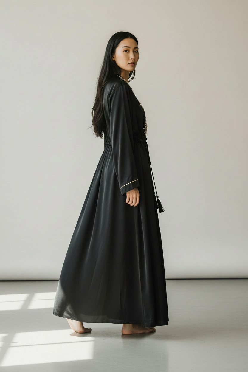 Charizma - Μάξι Καφτάνι Φόρεμα με Διακοσμητικά Στοιχεία και Ρυθμιζόμενη Μέση Μαύρο