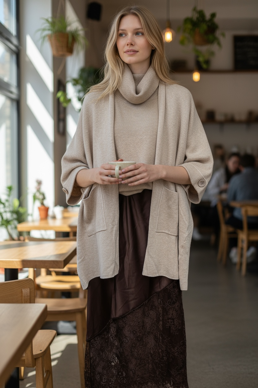 Ανακαλύψτε τη μακριά ζακέτα που συνδυάζει άψογα στυλ και άνεση! Αυτή η κομψή ζακέτα είναι το απόλυτο κομμάτι για τις χειμωνιάτικες μέρες, προσφέροντας απαλή υφή και ζεστασιά. Με μήκος που φτάνει μέχρι το γόνατο, είναι ιδανική για να ολοκληρώσει κάθε casual ή επίσημη εμφάνιση. Αυτή η ζακέτα αγκαλιάζει το σώμα, ενώ η αέρινη εφαρμογή της προσφέρει ελευθερία κινήσεων.