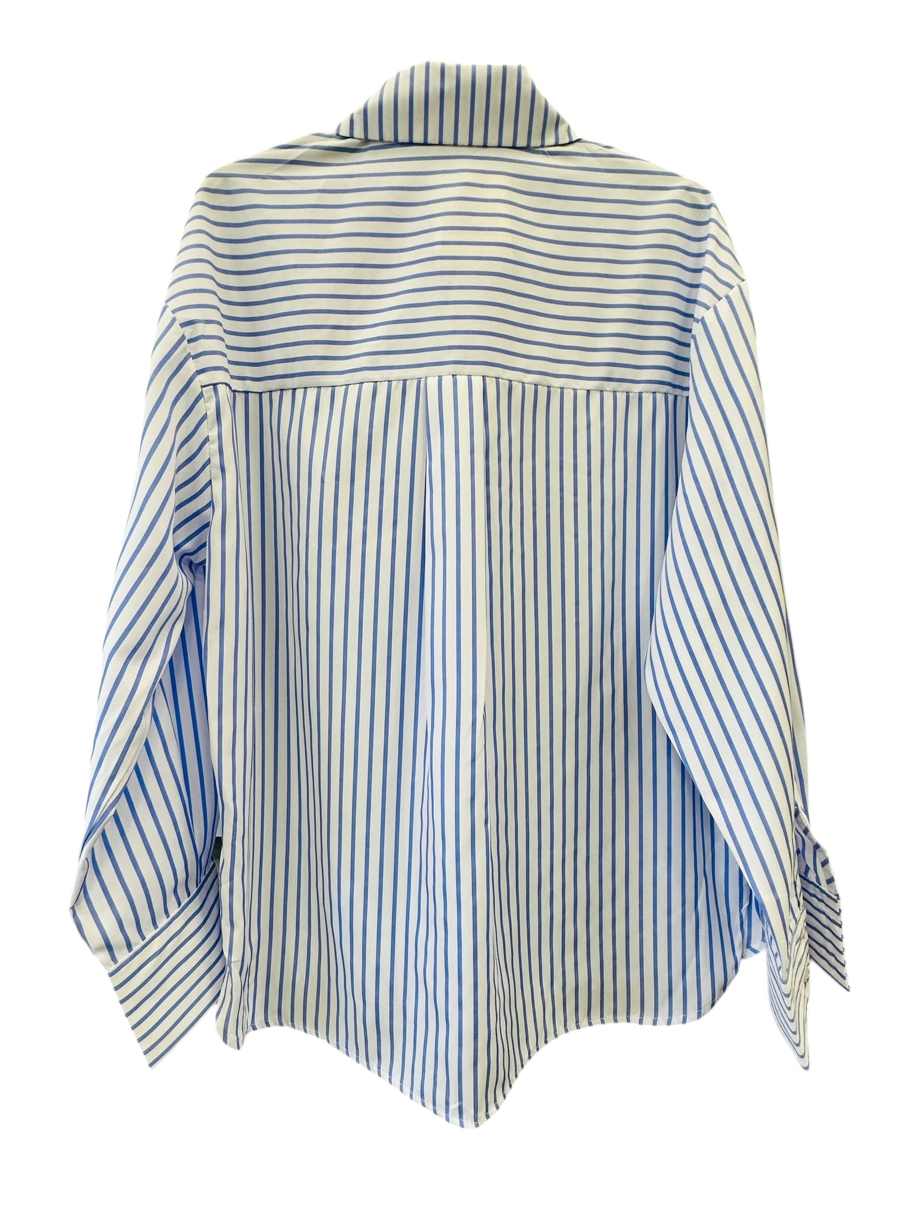 ANLYTA - Πουκάμισο Λευκό με Μπλε Ριγέ Oversized Με Κέντημα