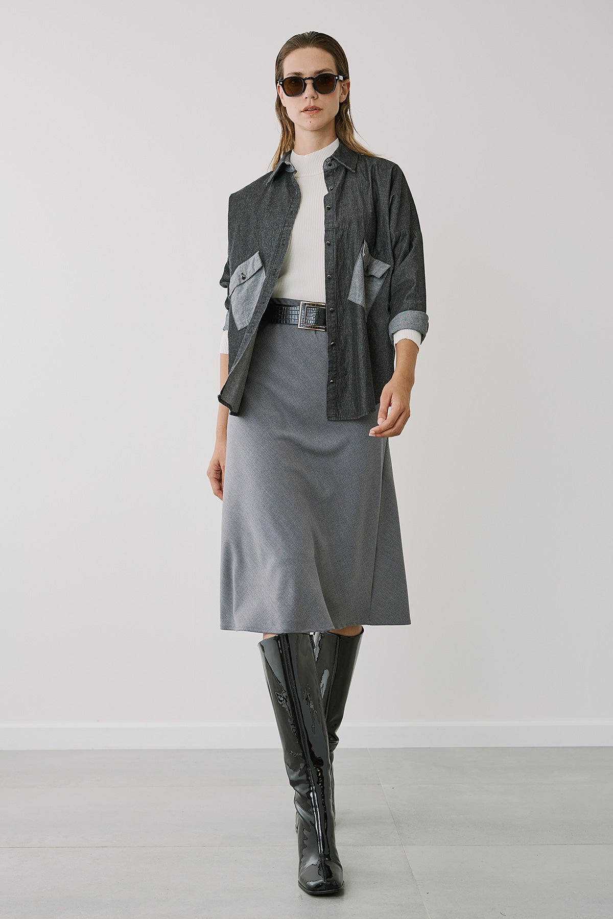 Μίντι φούστα με λάστιχο στη μέση, γραμμή Α. Το must have της σεζόν! κανονική εφαρμογή