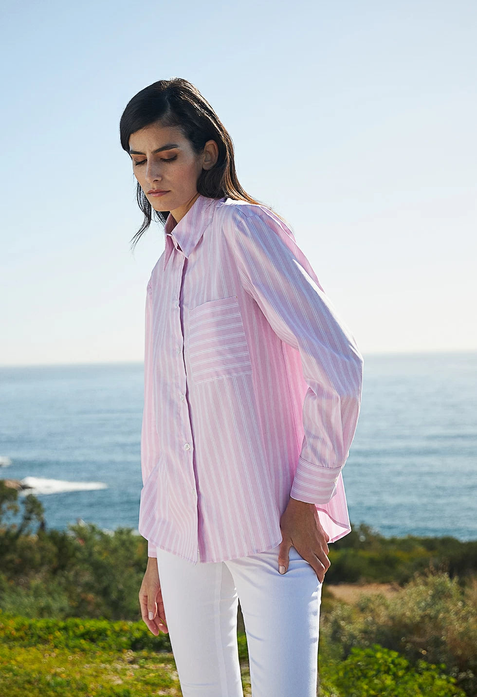 Desiree Ριγέ ροζ πουκάμισο ποπλίνα