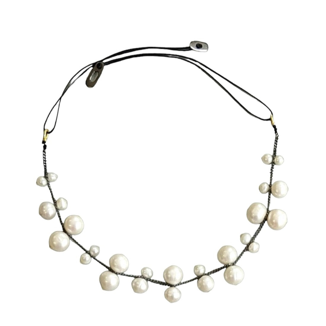 Ασημένιο 925 χειροποίητο κολιέ επιροδιωμένο και μαργαριτάρια
