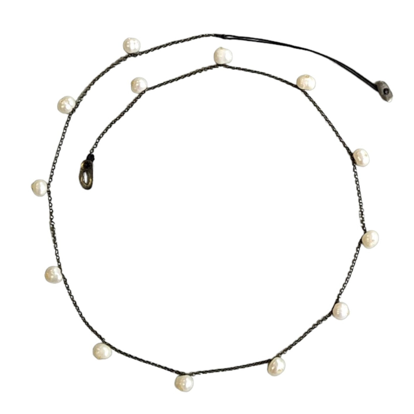 Ασημένιο 925 χειροποίητο κολιέ επιροδιωμένο και μαργαριτάρια