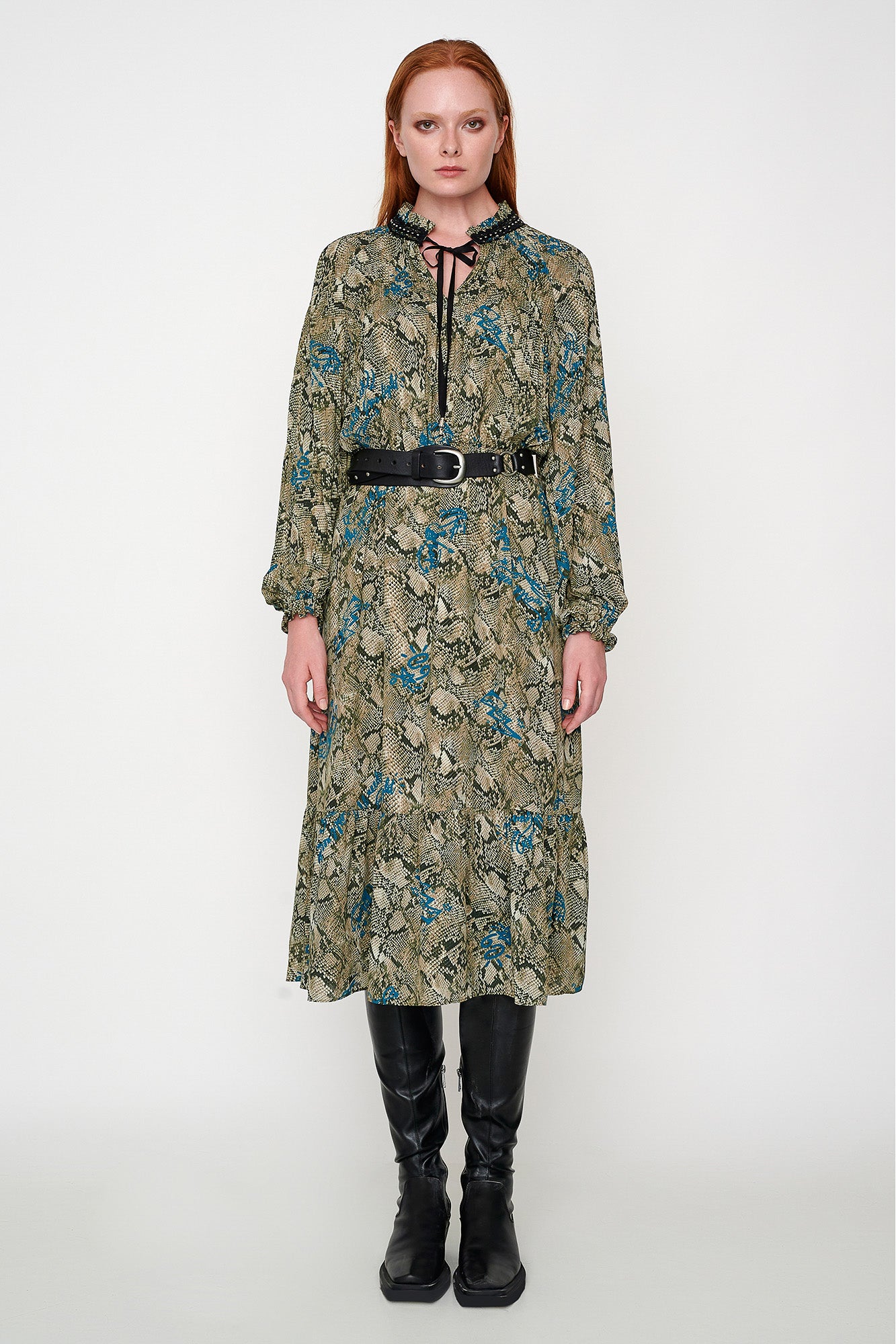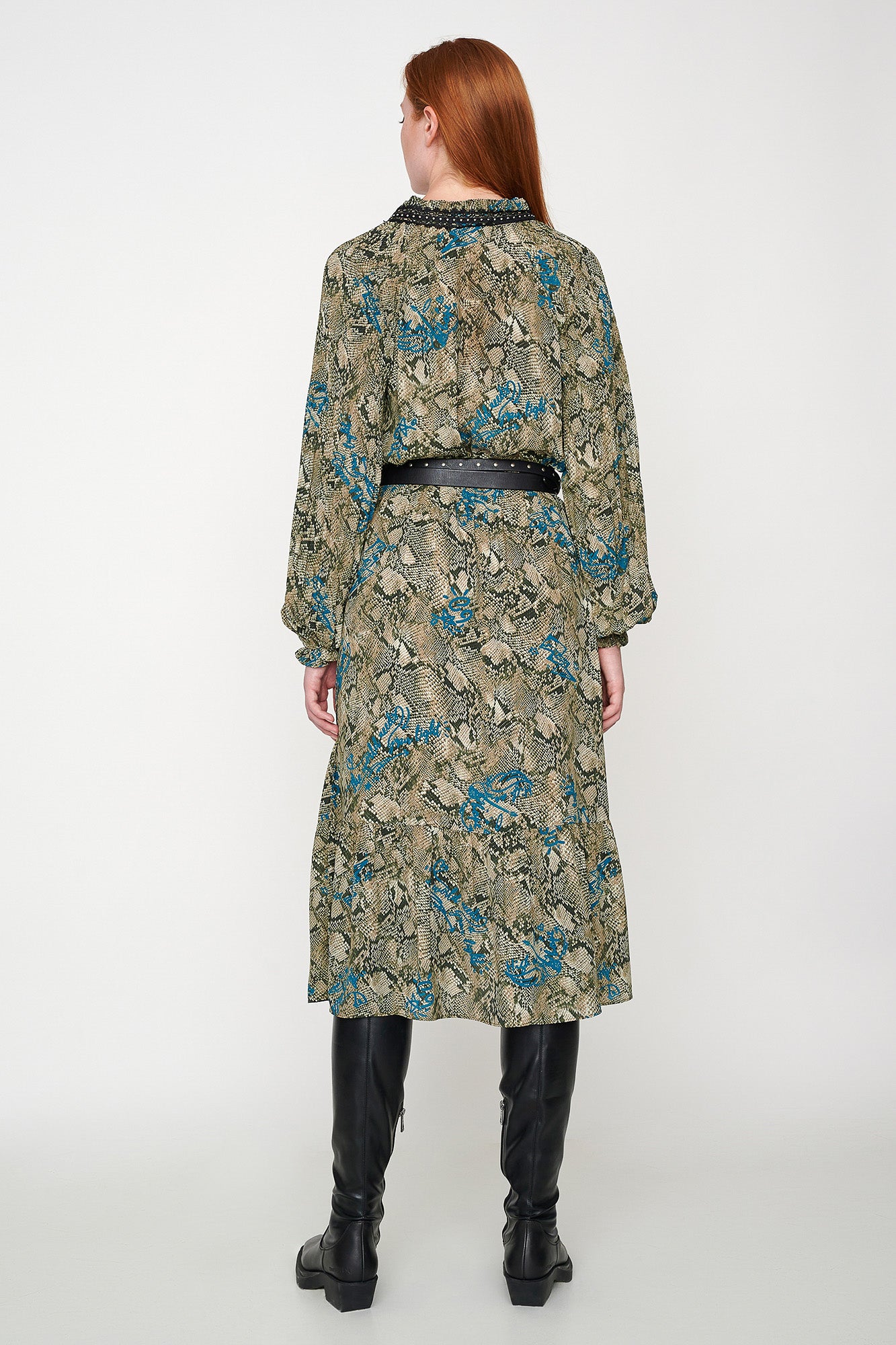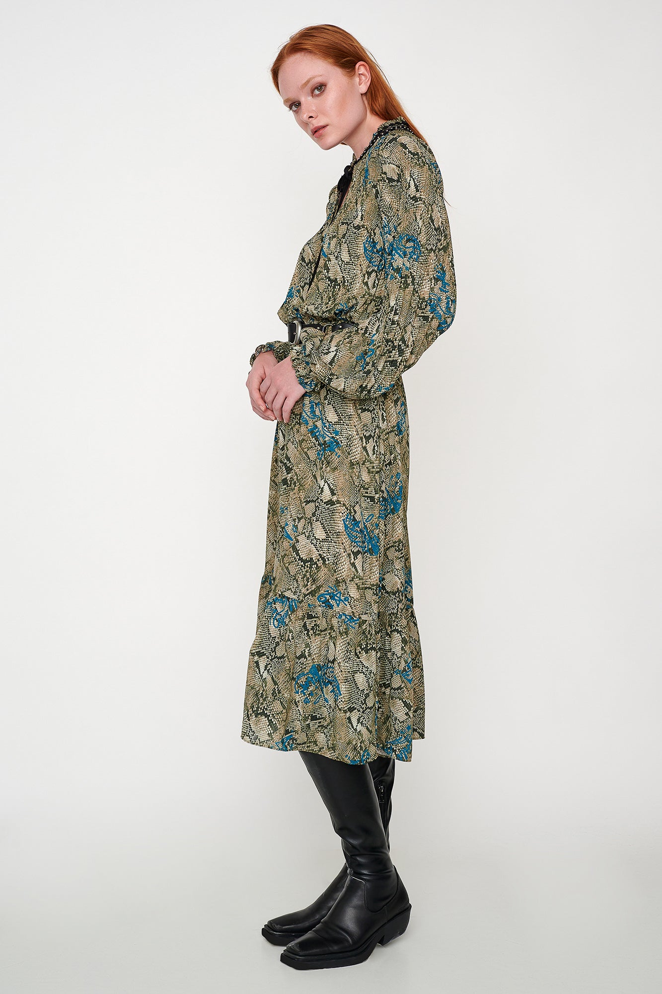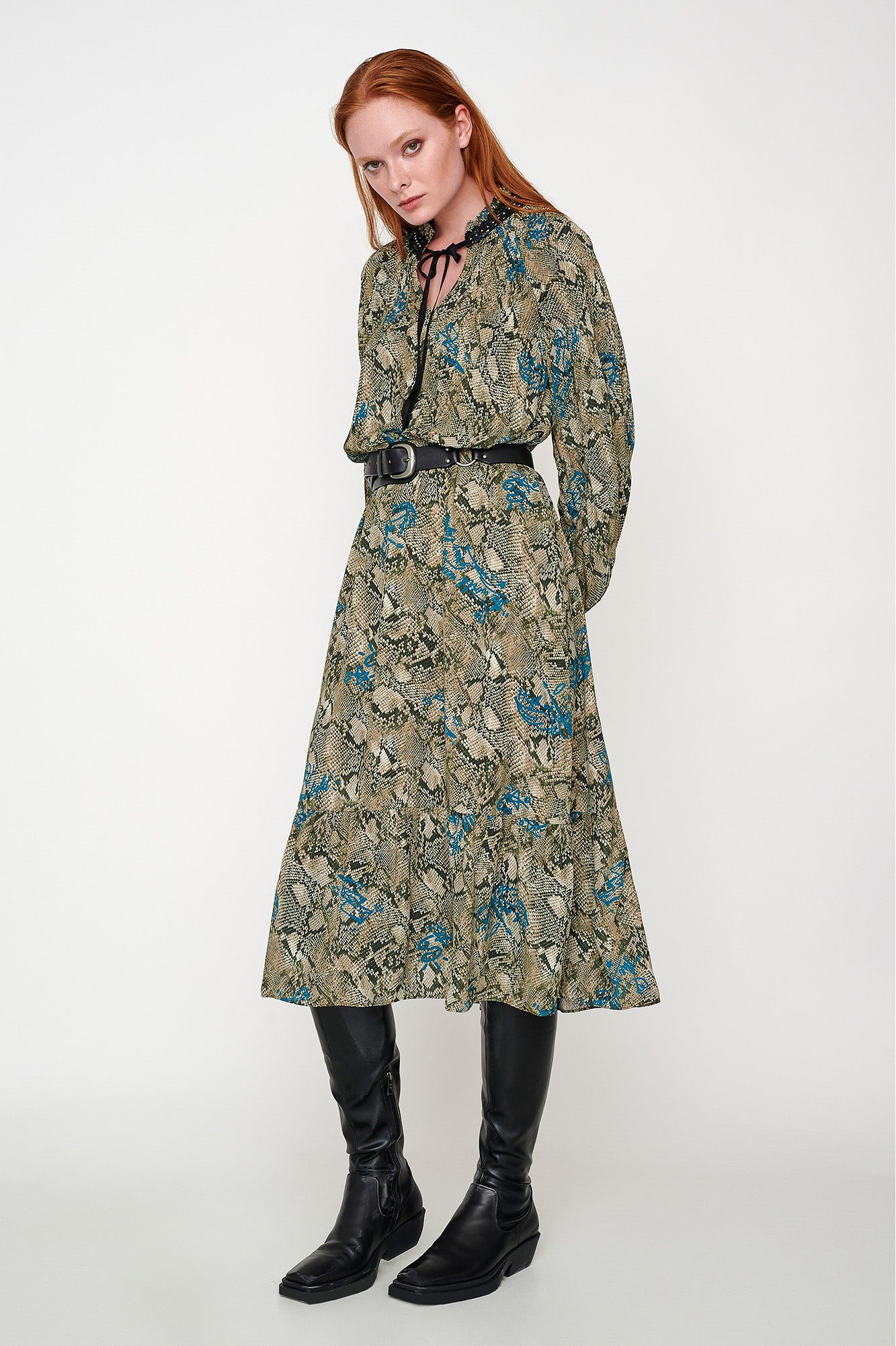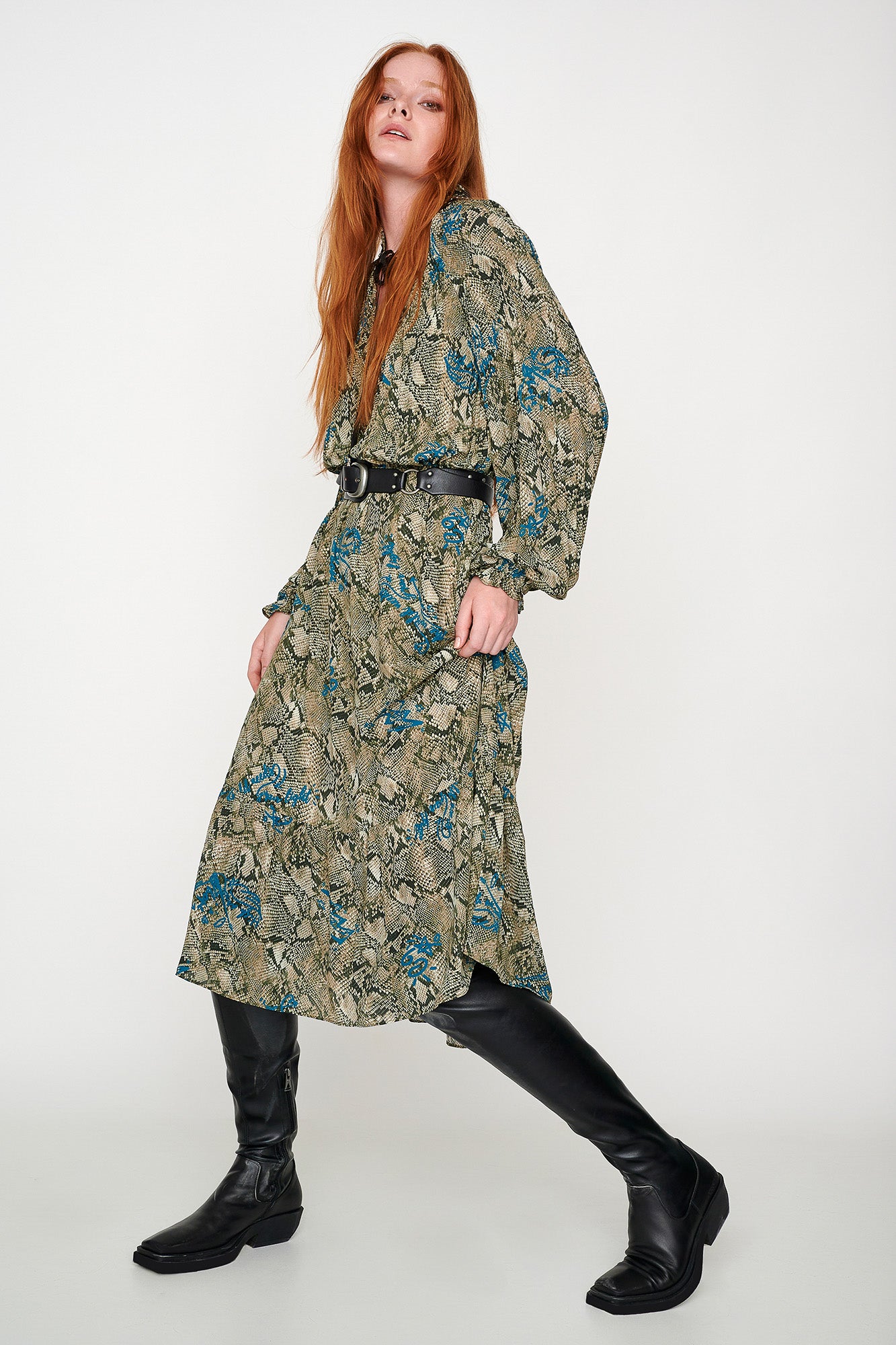 C9 Cloud 9 Revolutionary Love - Λαδί Εμπριμέ Μίντι Φόρεμα Με Πιέτες