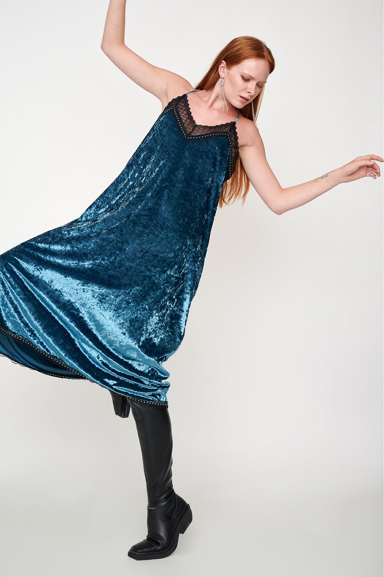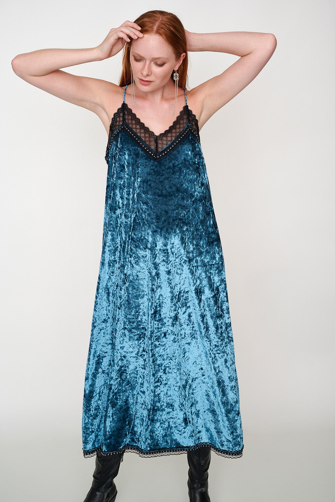 C9 Cloud 9 Moon City - Πετρόλ Βελούδινο Μάξι Slip Φόρεμα με διακοσμητικά μεταλλικά τρουκς