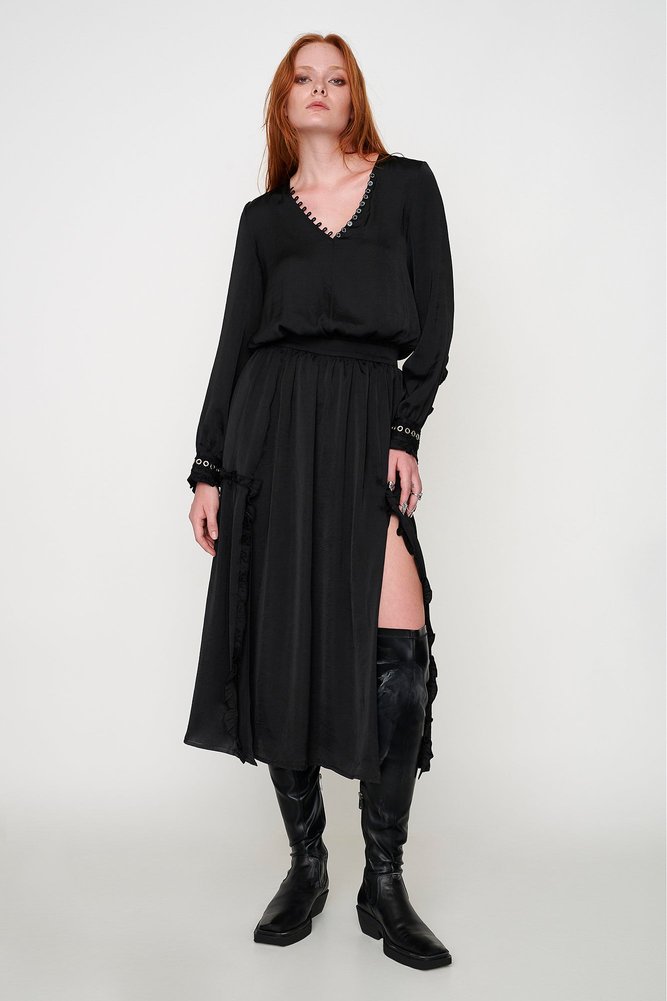 - Φούστα με βολάν και σκίσιμο στο πλάι