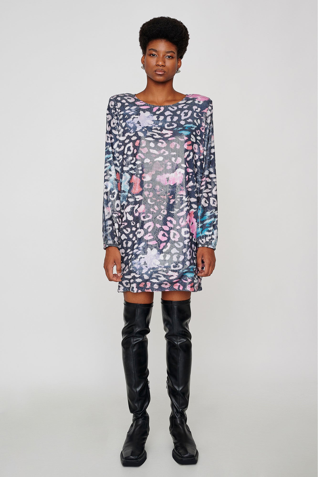 Λάμψτε μέσα σε αυτό το τόσο ιδιαίτερο μίνι φόρεμα με κατασκευή διακοσμημένη με πούλιες σε dusty pink λεοπάρ μοτίβο που δίνει μια πρόσθετη πινελιά στυλ. Ιδανικό για να το συνδυάσετε με ο,τιδήποτε, από μια εντυπωσιακή γόβα μέχρι τις κομψές ψηλές μπότες μέχρι το γόνατο, αυτό το μίνι φόρεμα που ταιριάζει με όλα είναι η ιδανική επιλογή για επίσημες αλλά και πιο χαλαρές περιστάσεις.