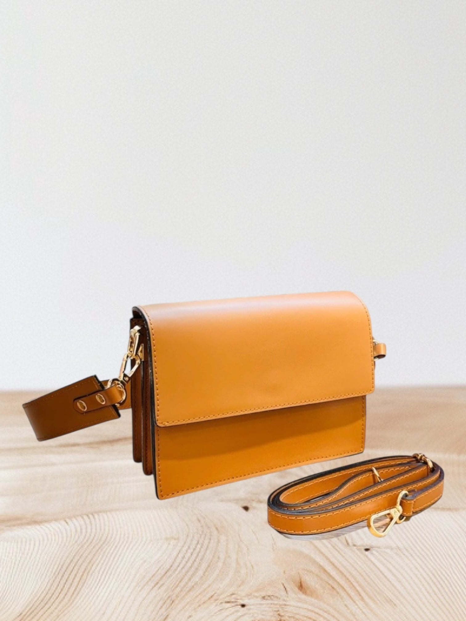 Δερμάτινη τσάντα ώμου ορθογώνιο με 2 λουράκια (ώμου & χιαστί)