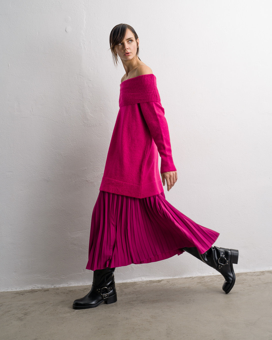 Tailor Made - Έξωμο Πουλόβερ Μακρύ Φούξια