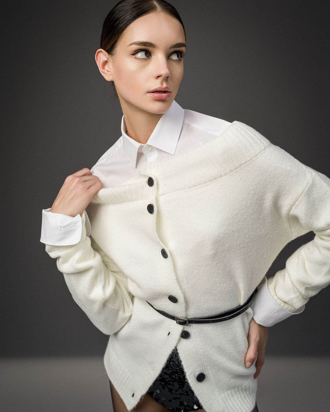 Tailor Made - Πλεκτή Ζακέτα Υπόλευκη