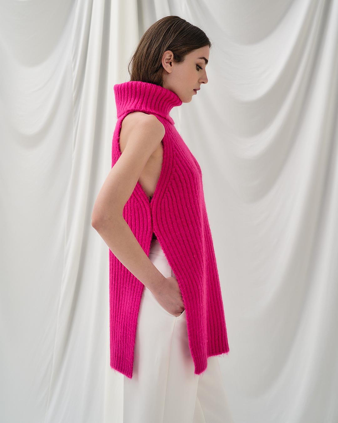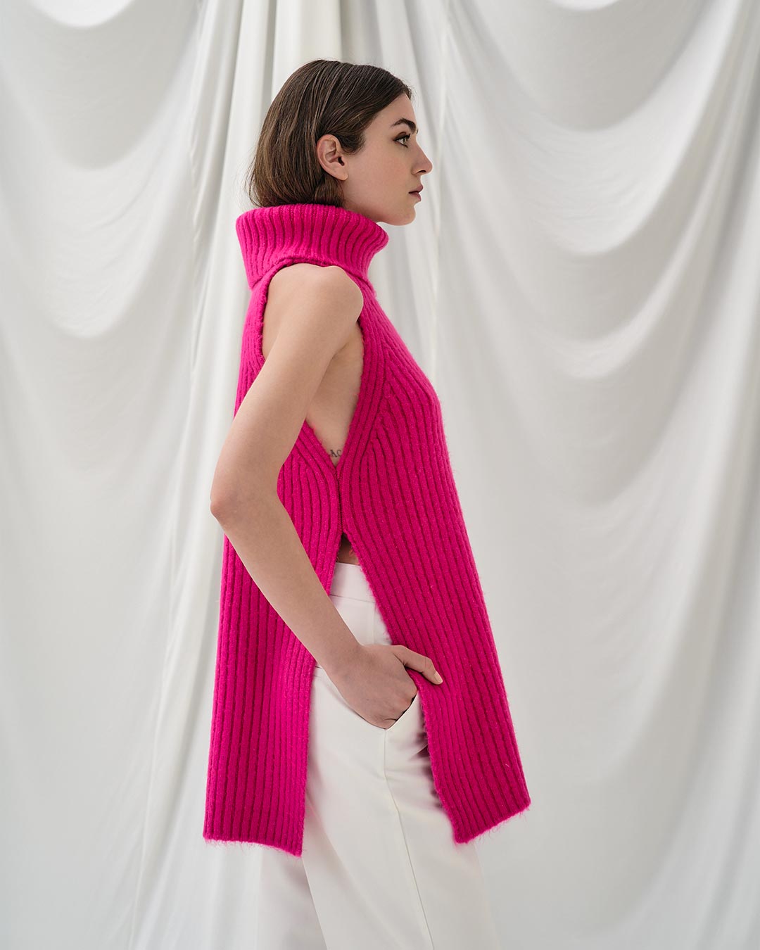 Tailor Made- Αμάνικο Oversized Πουλόβερ Ζιβάγκο Φούξια