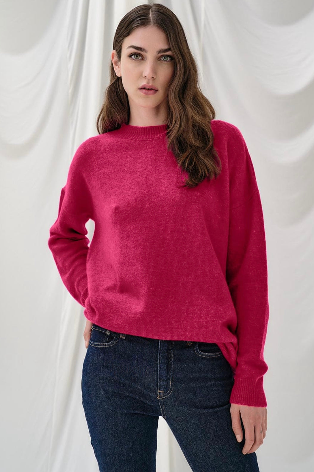 Tailor Made- Oversized Πουλόβερ Λαιμόκοψη Φούξια