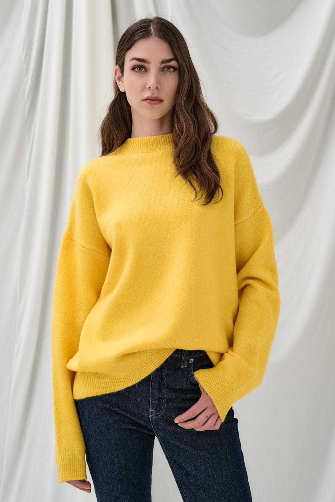 Tailor Made- Oversized Πουλόβερ Λαιμόκοψη Κίτρινο