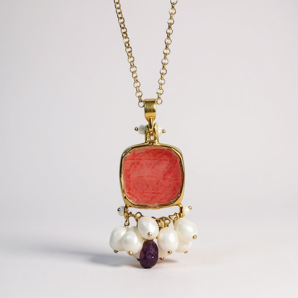Tonia Makri - Χειροποίητο Επίχρυσο Ασημένιο Κολιέ με ημιπολύτιμους λίθους