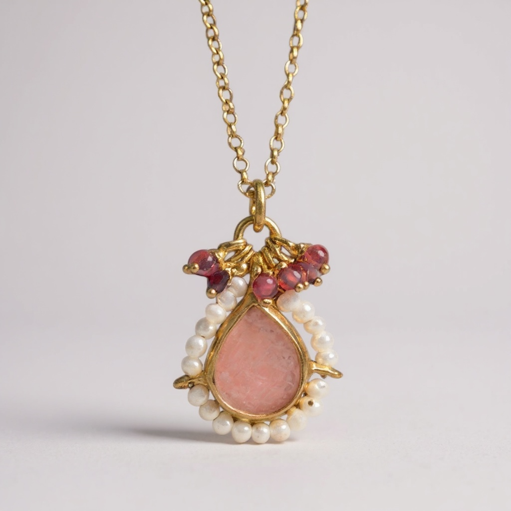 Tonia Makri - Χειροποίητο Επίχρυσο Ασημένιο Κολιέ με ημιπολύτιμους λίθους
