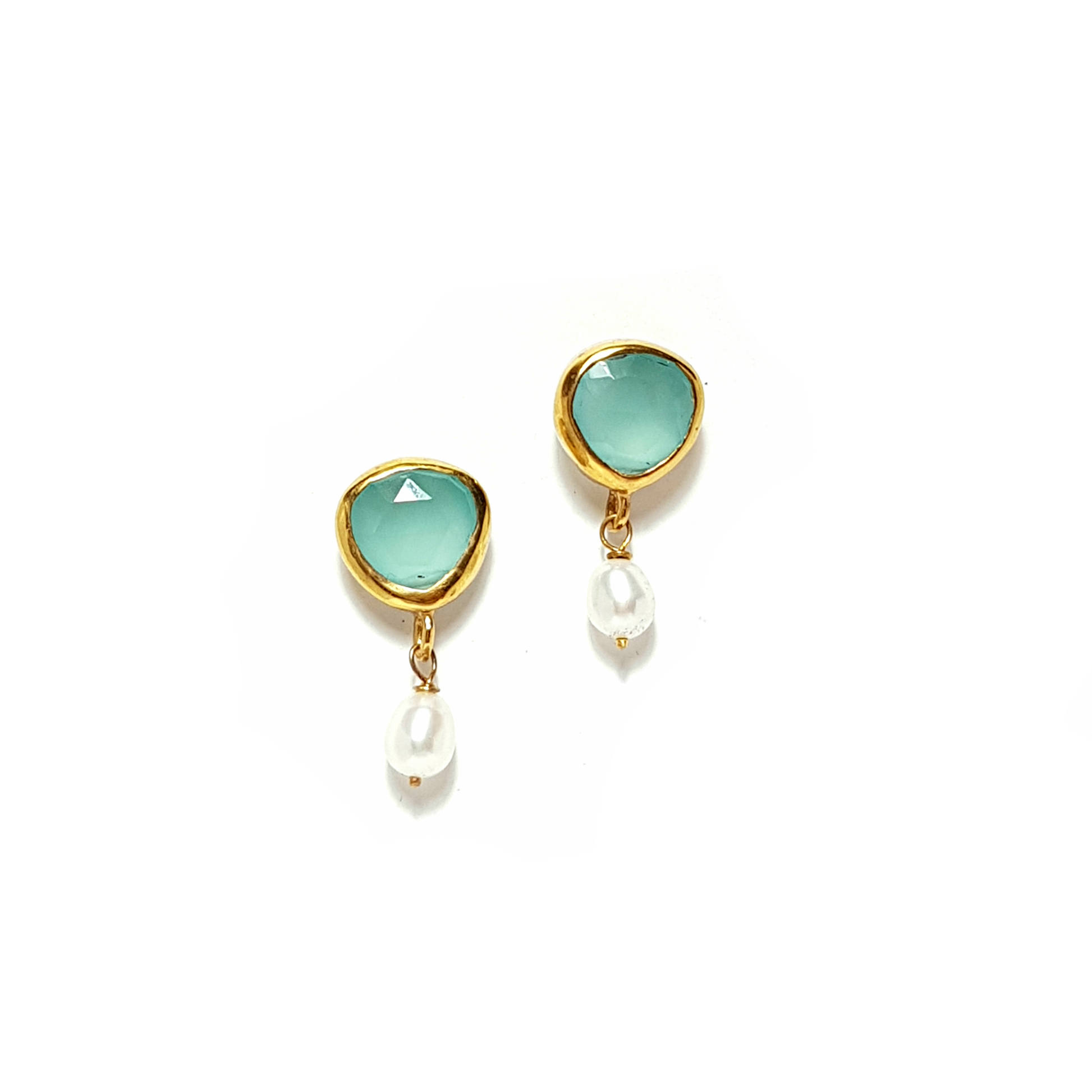 Χειροποίητα επίχρυσα ασημένια σκουλαρίκια με ημιπολύτιμους λίθους.