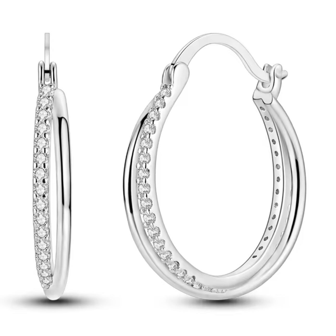 Σκουλαρίκια Διπλοί Κρίκοι Ασήμι 925 Με Ζιργκόν