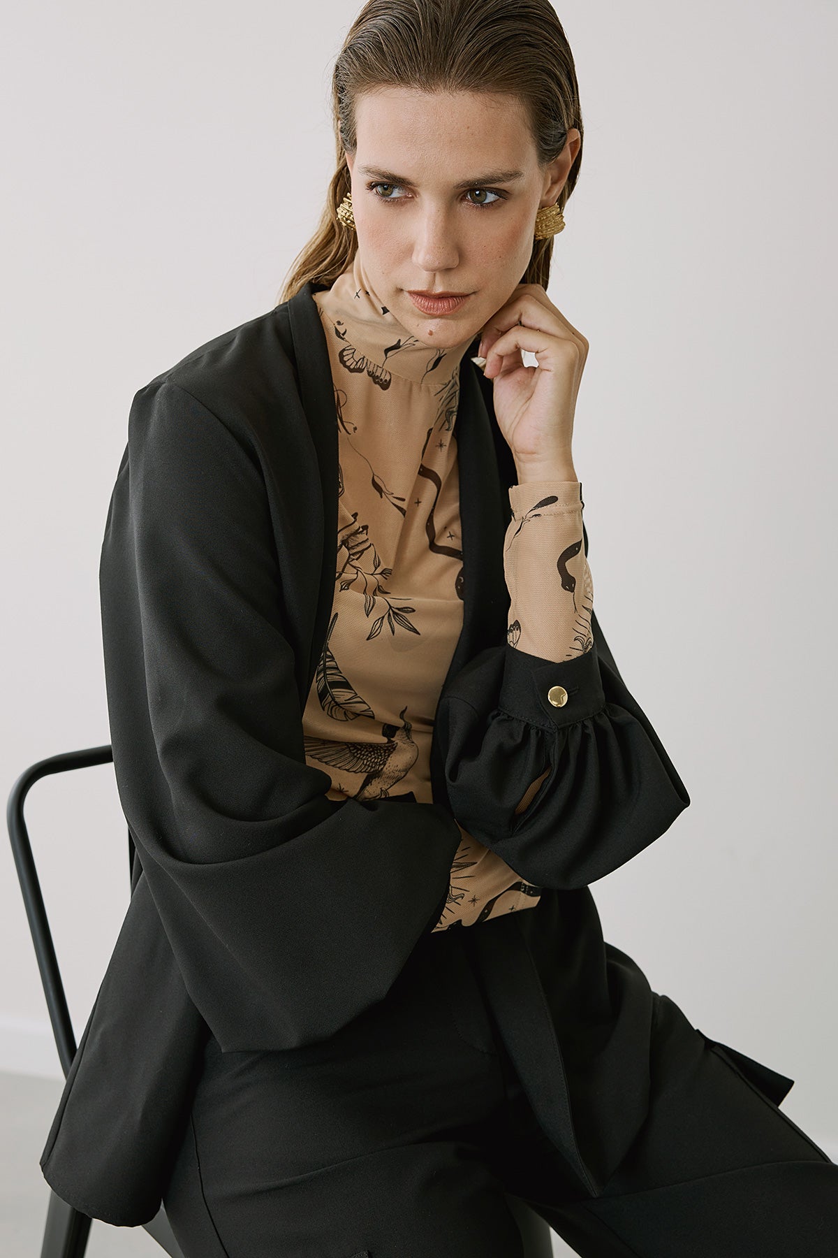 Ένα εντυπωσιακό διάφανες ζιβάγκο τύπου tattoo σε Print Fornasetti με ήλιους, χελιδόνια πεταλούδες, ερπετά, φτερά και ελιά.