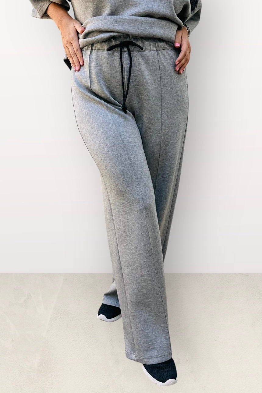 Άνεση και στυλ σε ένα κομμάτι! Αυτή η παντελόνα διαθέτει ελαστική μέση με κορδόνι για τέλεια εφαρμογή, ενώ η φαρδιά γραμμή της χαρίζει ελευθερία κινήσεων και μοντέρνα αισθητική. Ένα καθημερινό must-have που συνδυάζεται εύκολα με τοπ, πουκάμισα ή μπλούζες.
