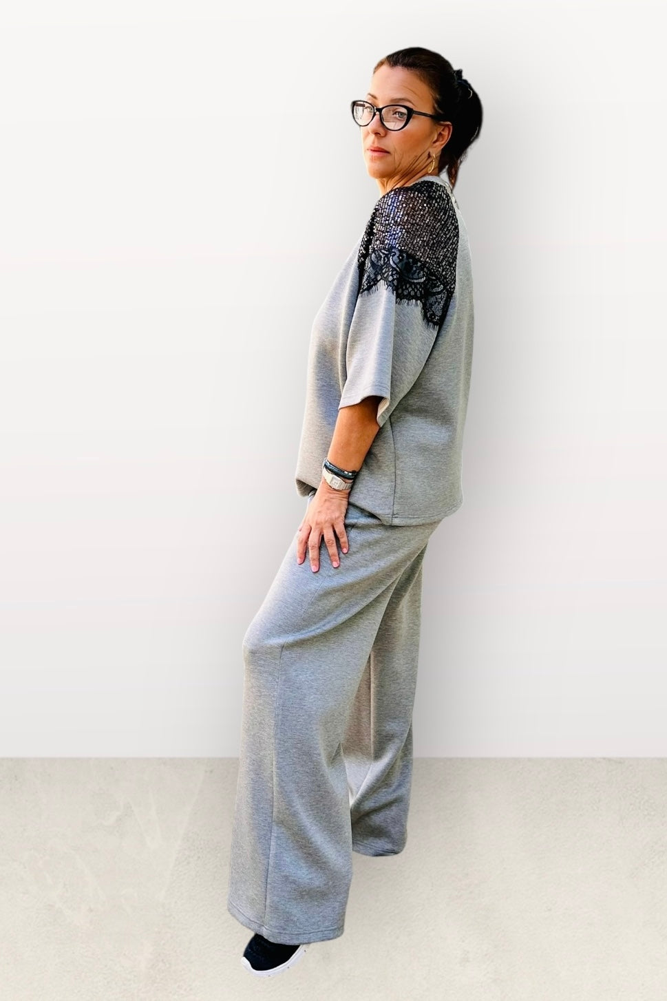 Eighty2 by Figaro - Παντελόνα με Λάστιχο & Κορδόνι στη Μέση Γκρι