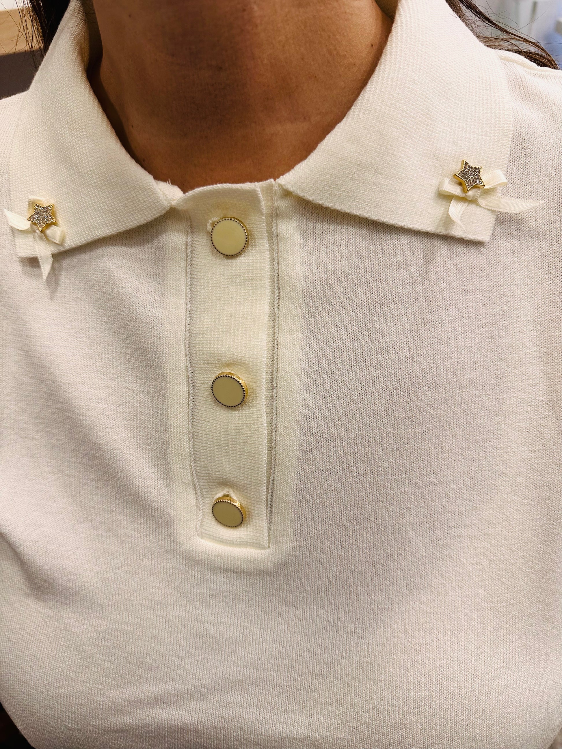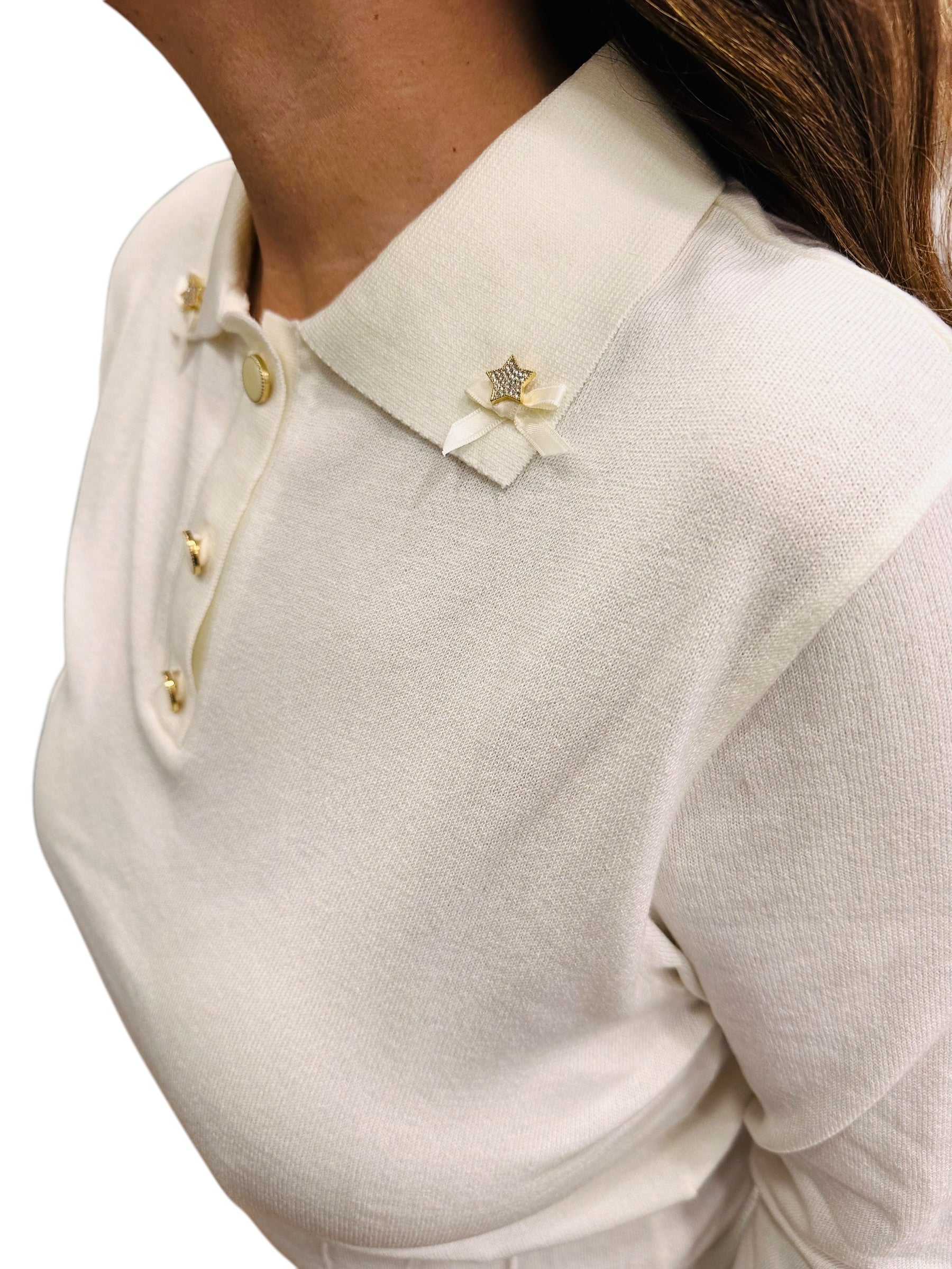 Figaro - Πλεκτή Μπλούζα Πόλο με Αστεράκια & φιόγκους Εκρού