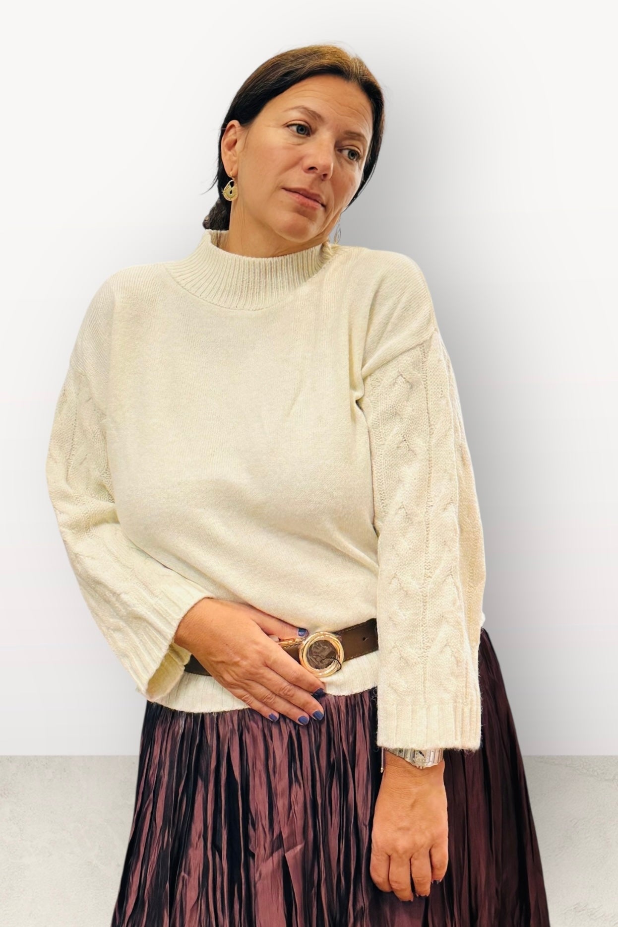 Figaro - Πλεκτό Πουλόβερ Με Πλέξη Στα Μανίκια Υπόλευκο
