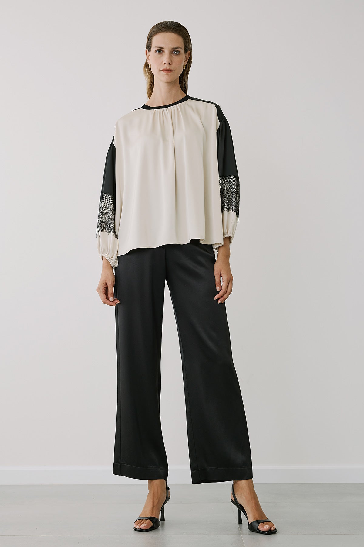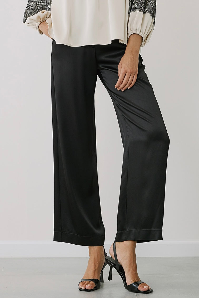 Figaro - Παντελόνα Φαρδιά Σατέν Μαύρη