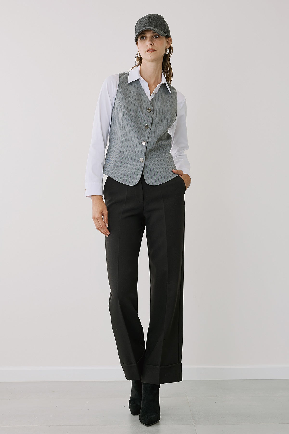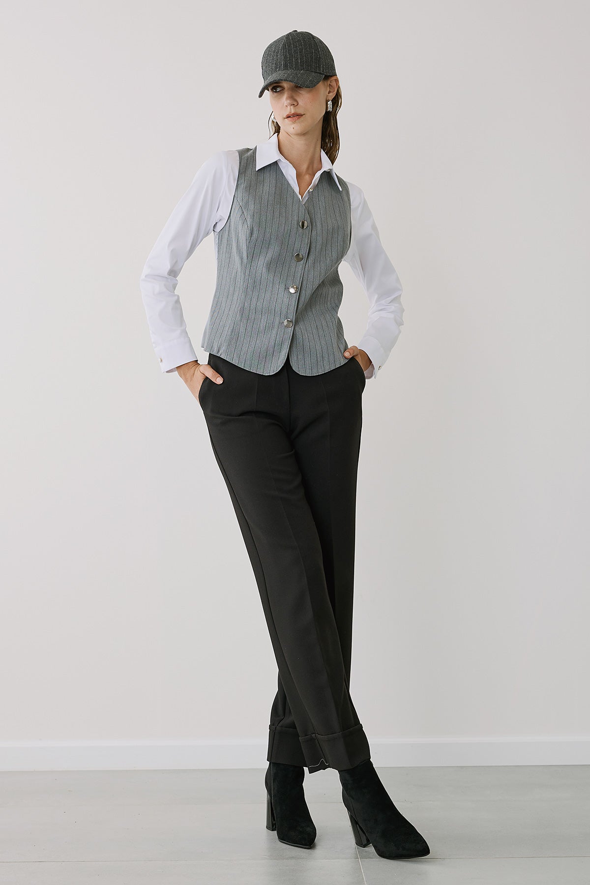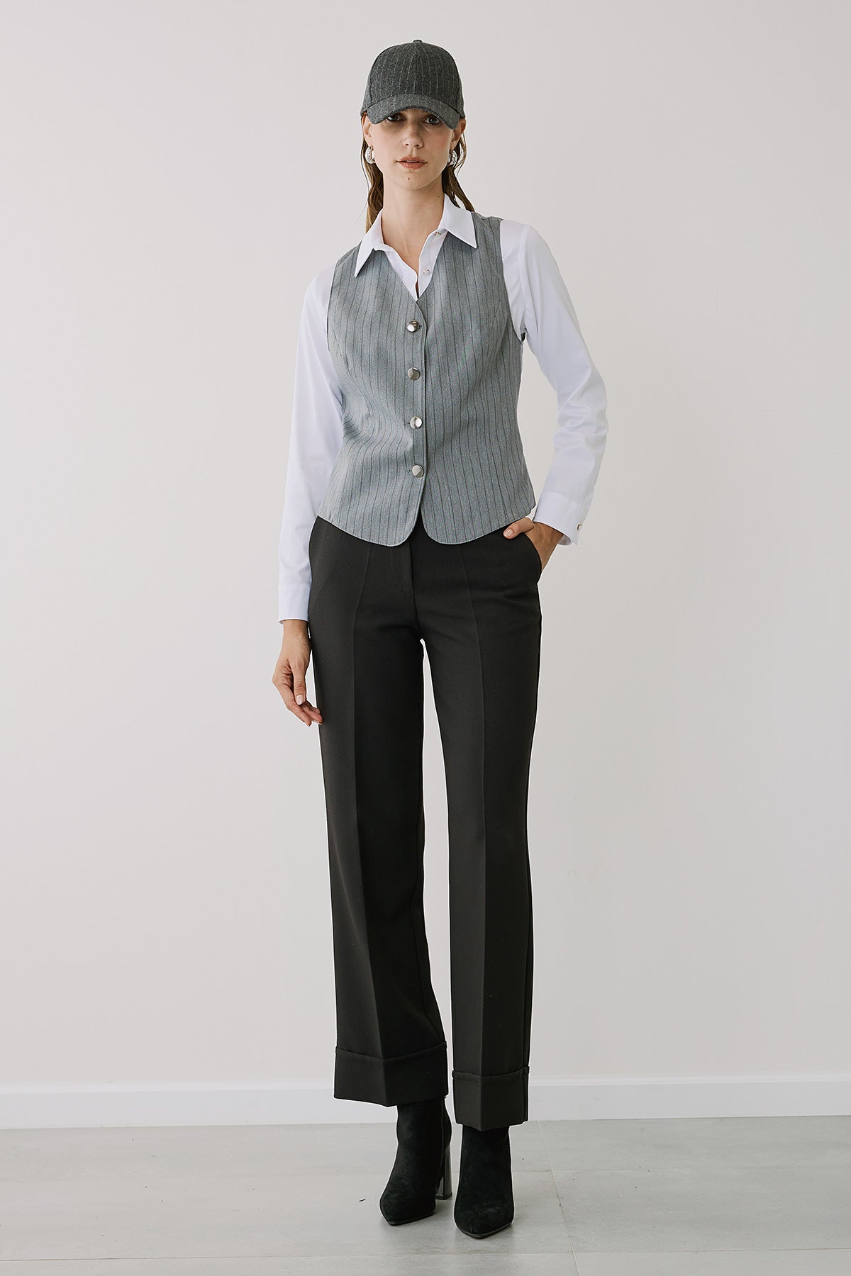 Διαθέσιμο σε τρεις ουδέτερους τόνους - γκρι, μαύρο και ανοιχτό μπεζ - μπορεί να συνδυαστεί εύκολα με κάθε μπλούζα ή πουκάμισο, δημιουργώντας κομψά σύνολα για κάθε περίσταση. Κατασκευασμένο από υφάσματα υψηλής ποιότητας, εξασφαλίζει άνετη εφαρμογή και διαχρονικό στυλ.