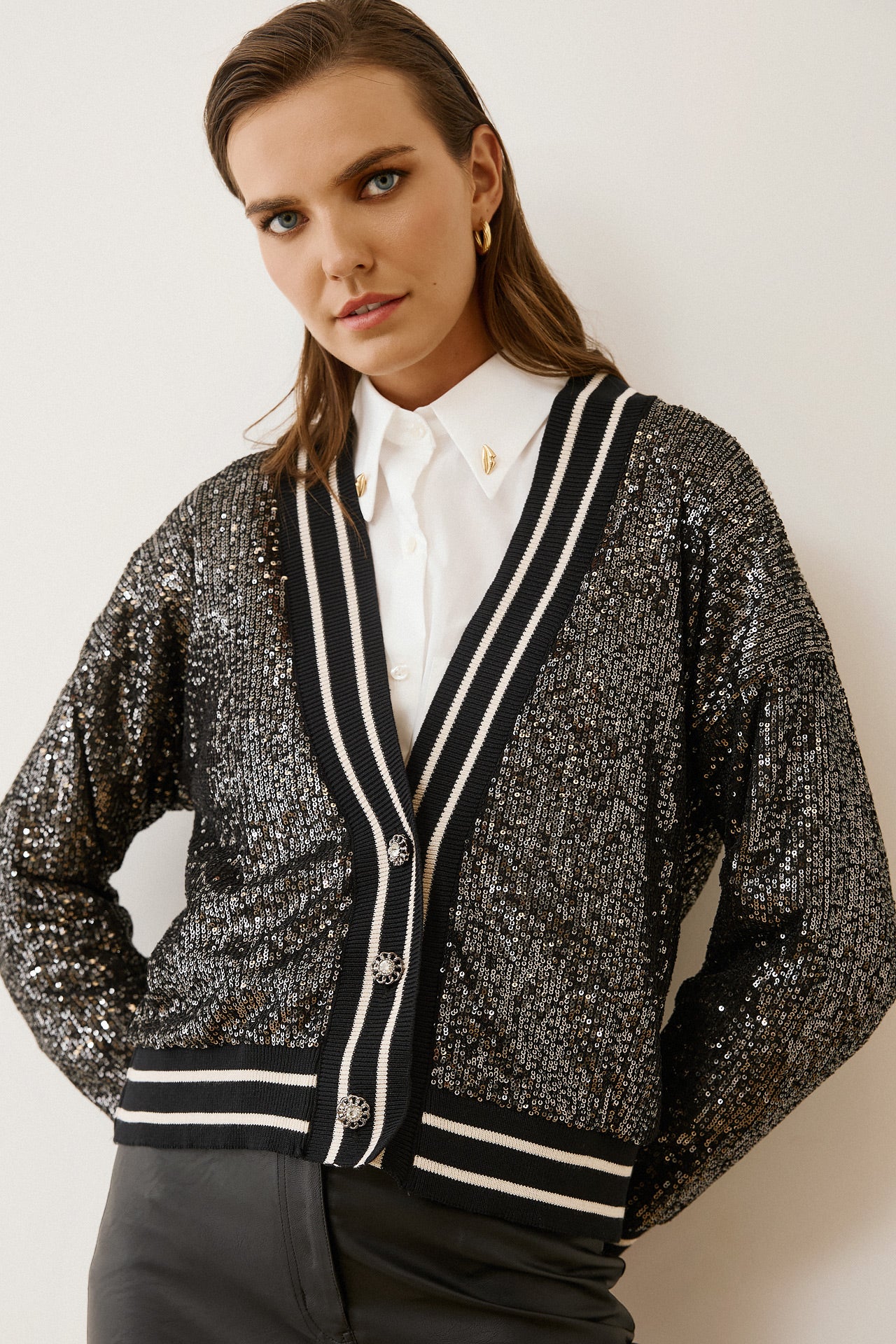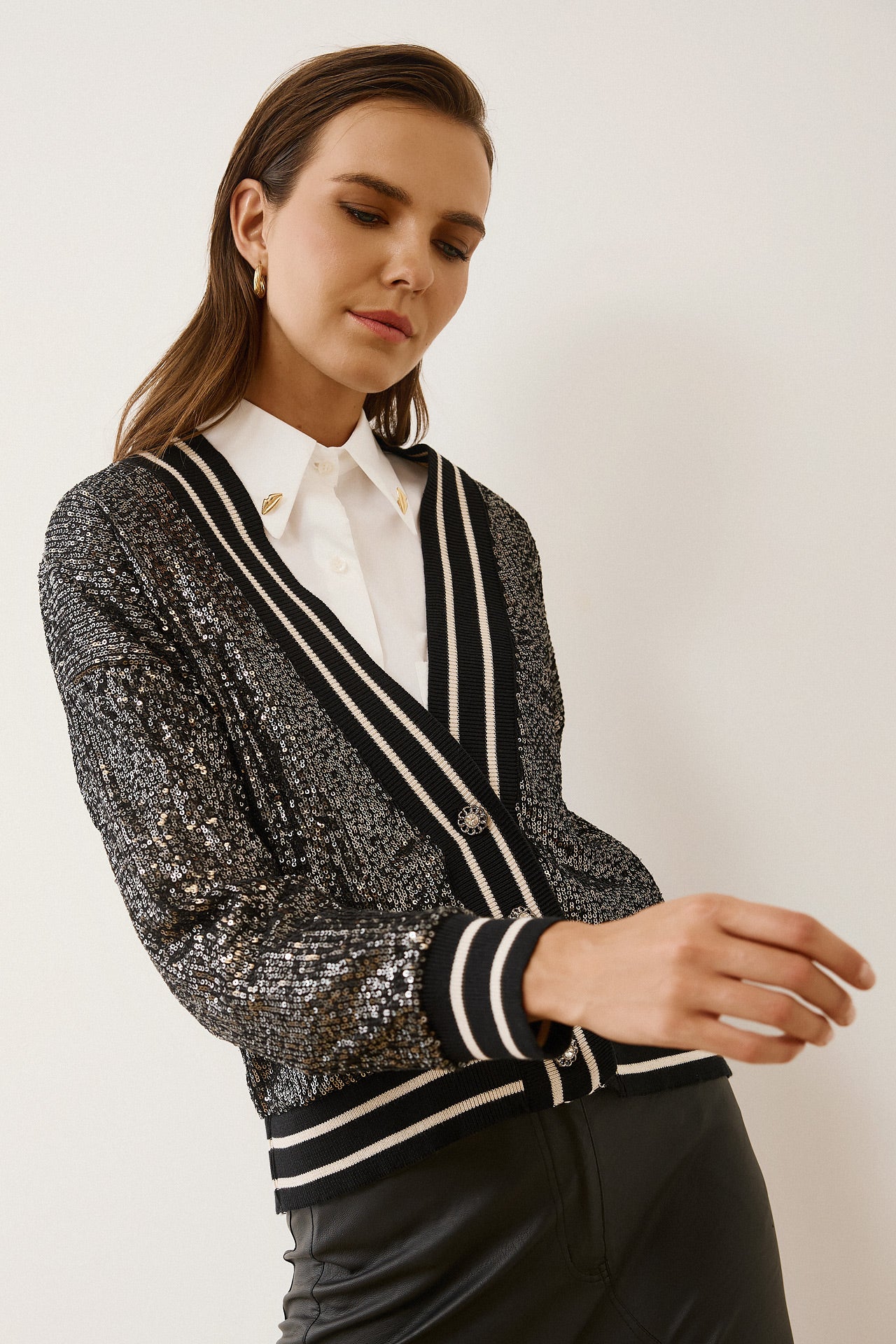 Figaro - Ζακέτα με Παγιέτες & V-Λαιμόκοψη