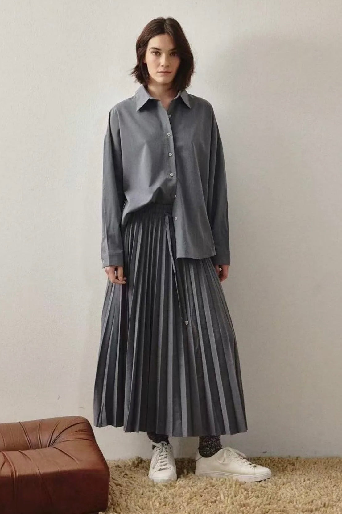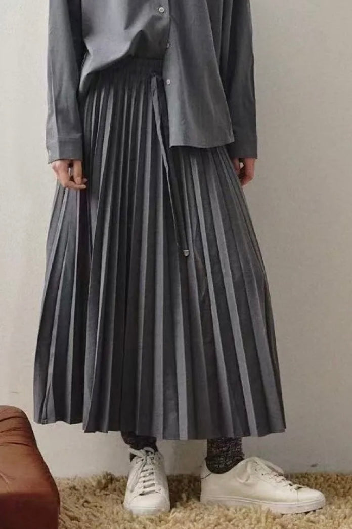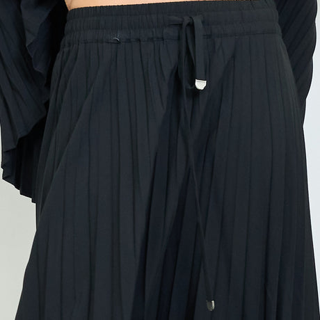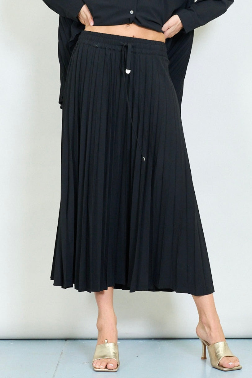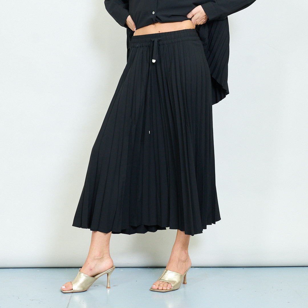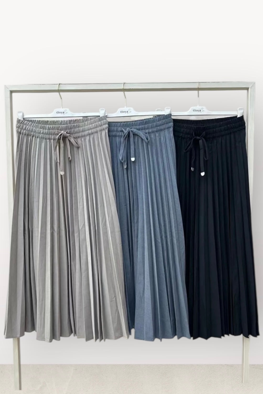 Ανακάλυψε την άνεση και το στυλ σε μία φούστα! Αυτή η midi πλισέ φούστα διαθέτει ελαστική μέση με κορδόνι για τέλεια εφαρμογή και κίνηση που εντυπωσιάζει. Ιδανική για casual chic εμφανίσεις, συνδυάζεται εύκολα με πουκάμισα, t-shirts ή πλεκτά για all-day looks.