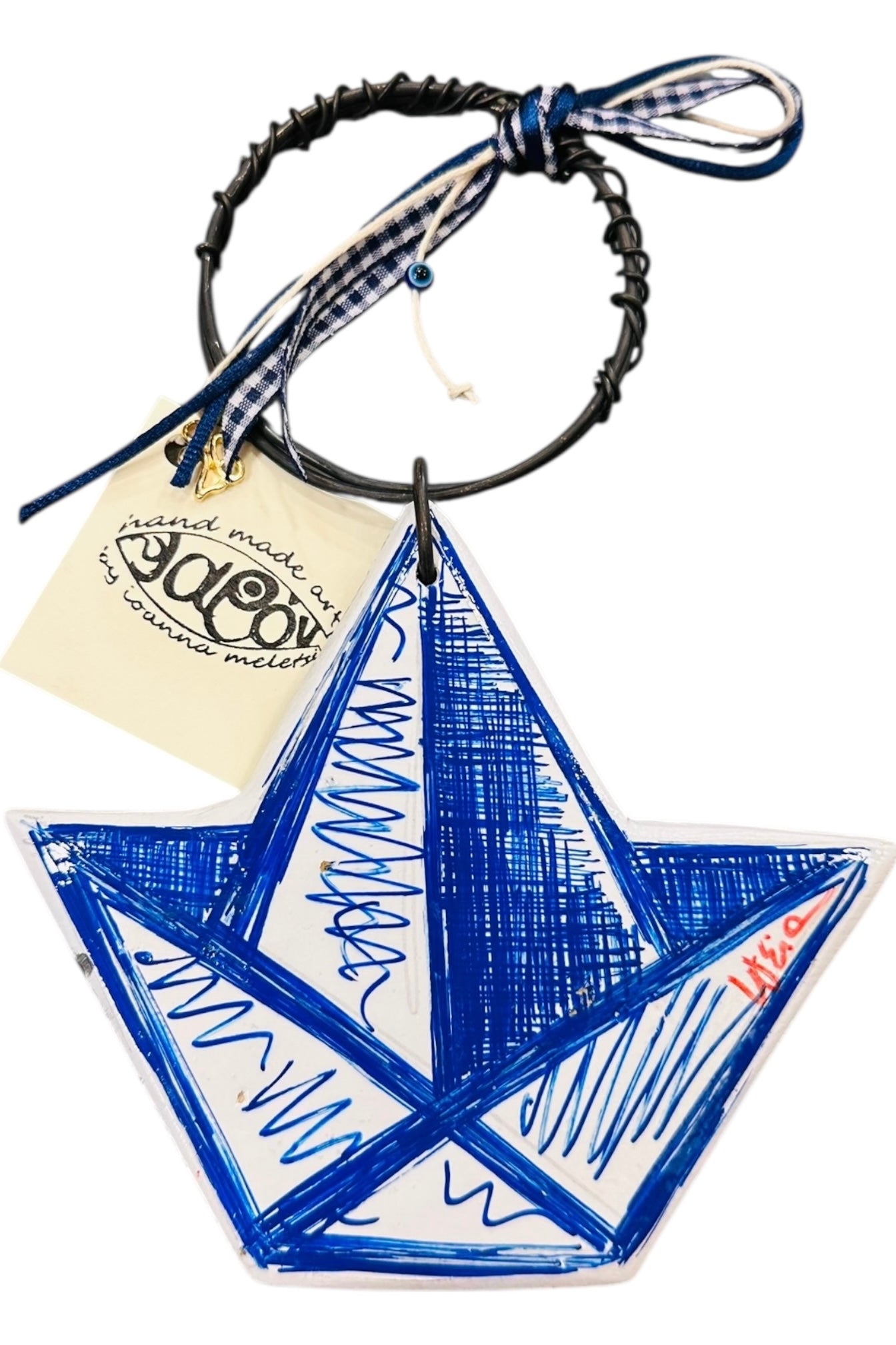 Ψαρόνι - Κεραμικό Γούρι «Χάρτινο το Καραβάκι» Μπλε
