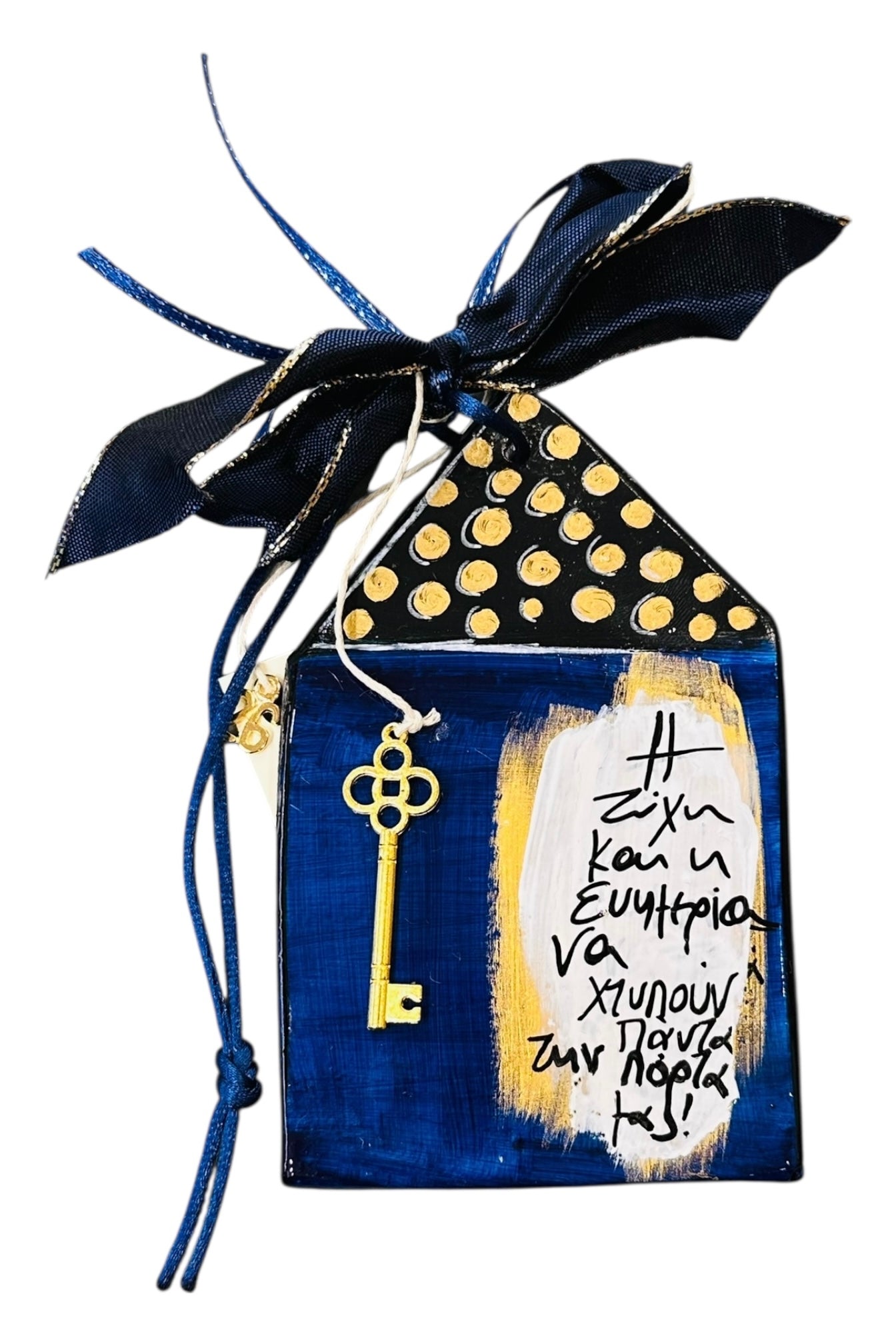 Ψαρόνι - Κεραμικό Γούρι Σπιτάκι Μπλε με Ευχές