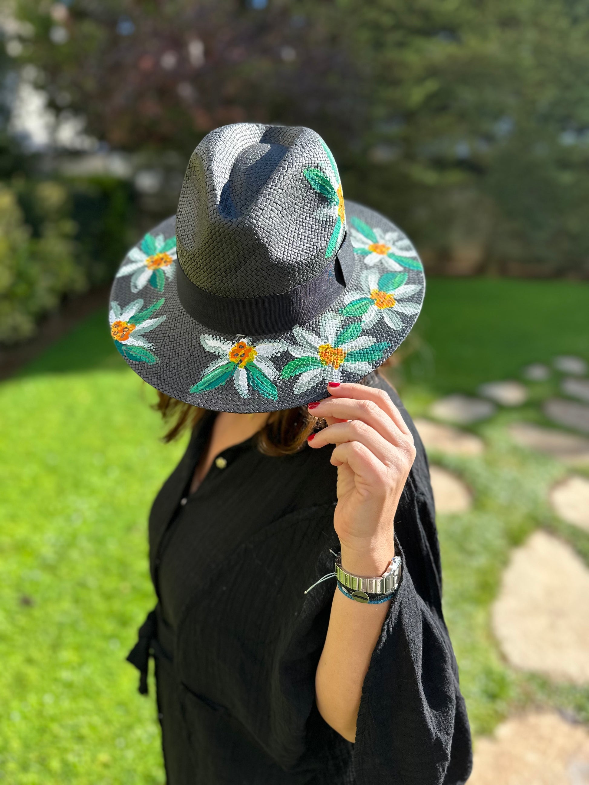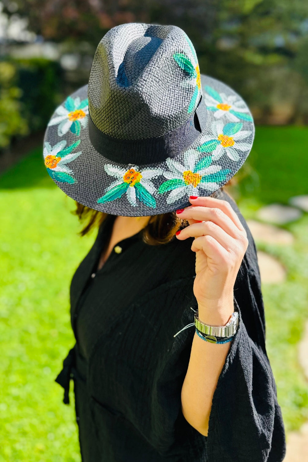 Αναδείξτε τη μοναδικότητά σας με τα εξαιρετικά μας καπέλα, ζωγραφισμένα στο χέρι με υπέροχα λουλουδένια μοτίβα. Κάθε καπέλο είναι ένα έργο τέχνης, φτιαγμένο με μεράκι και προσοχή στη λεπτομέρεια, για να σας προσφέρει ένα ξεχωριστό στυλ που αιχμαλωτίζει την ομορφιά της φύσης.