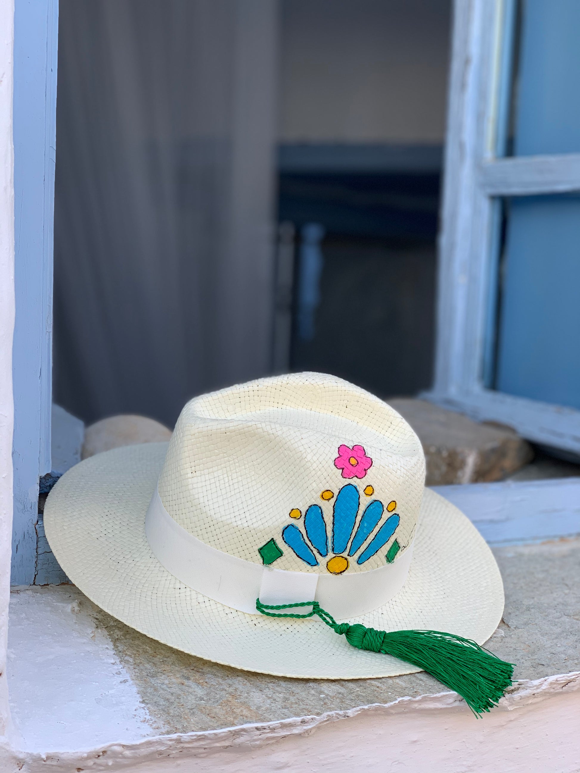 - Ζωγραφική στο χέρι και πράσινη φούντα.