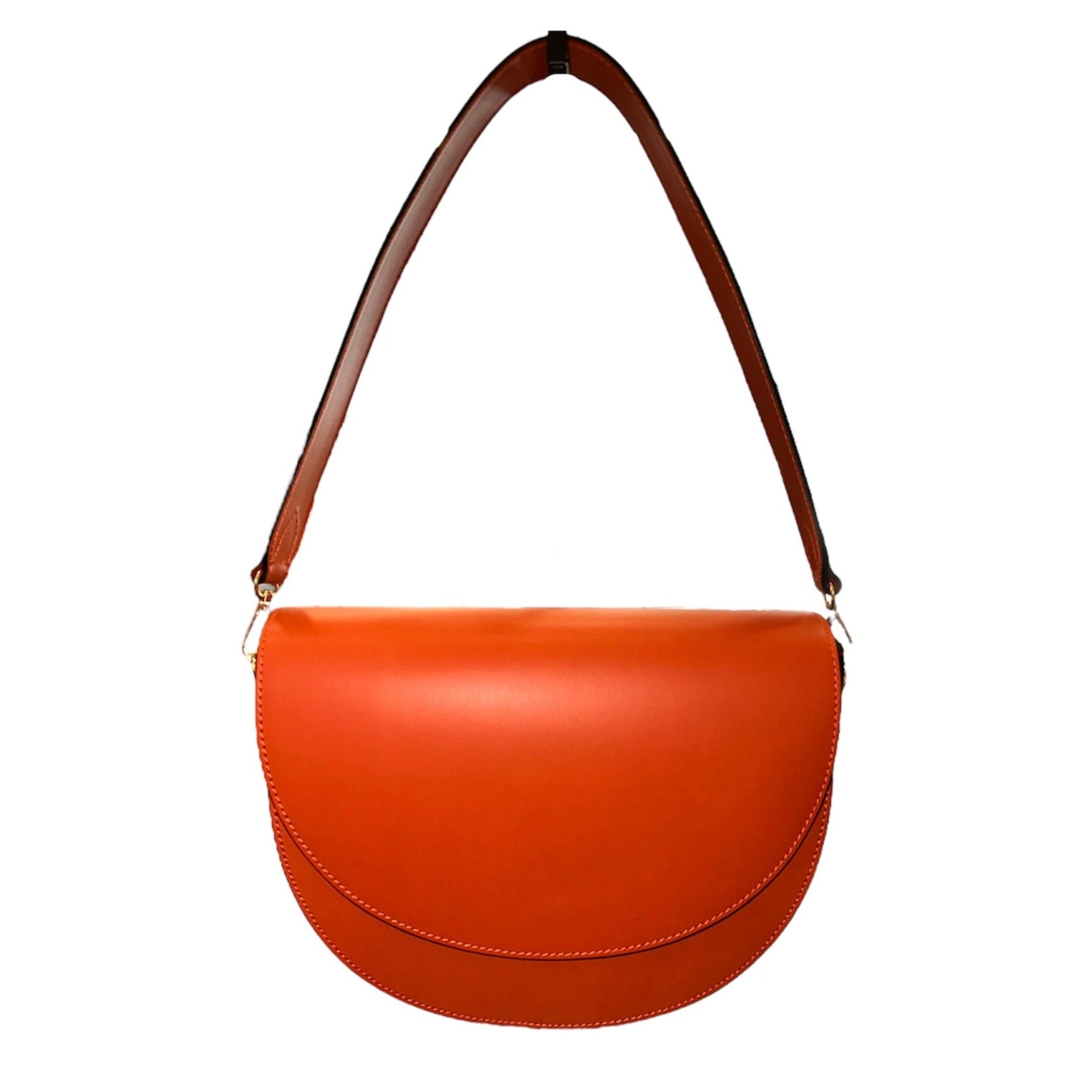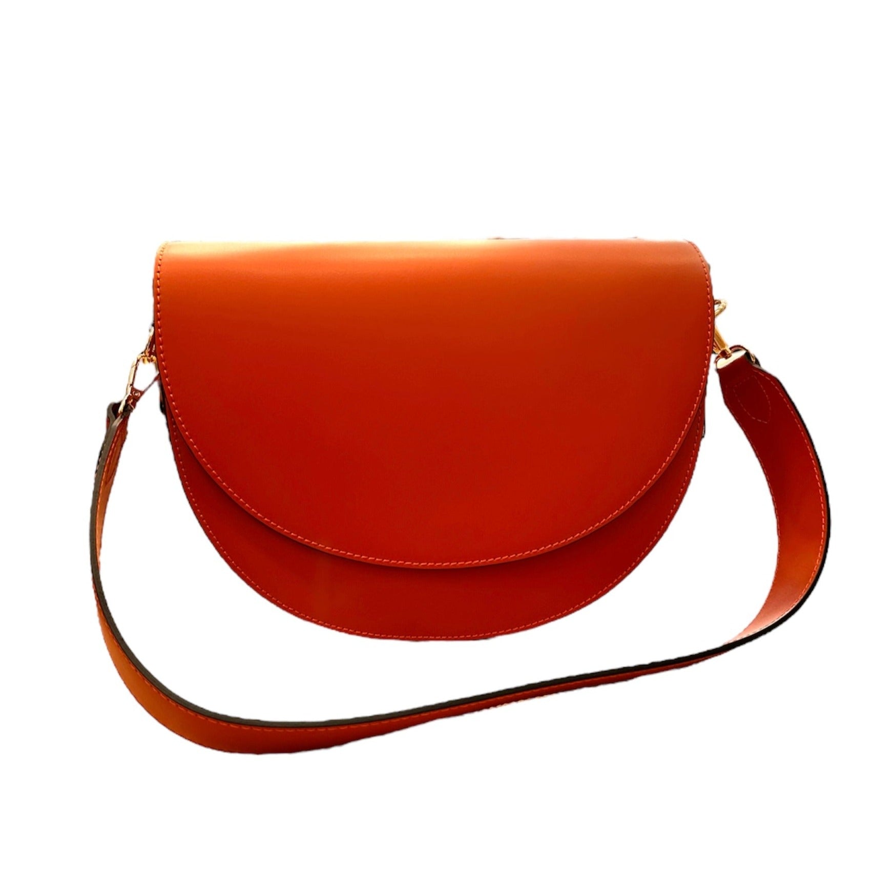 Loet - Δερμάτινη τσάντα ημικύκλιο με 2 λουράκια πορτοκαλί