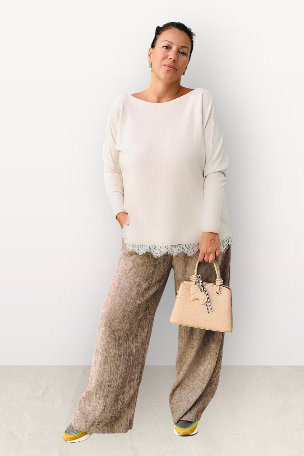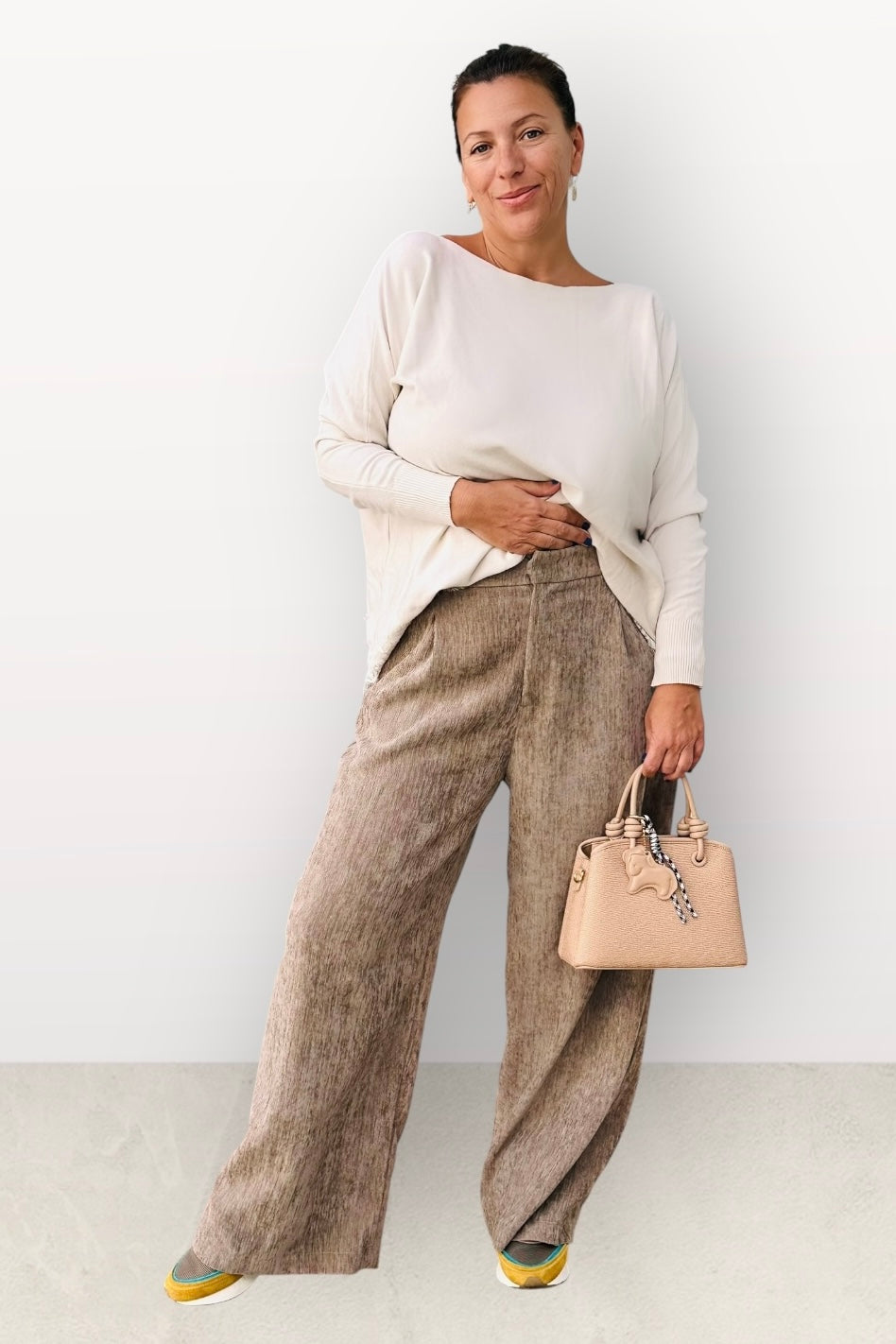 Ένα διαχρονικό παντελόνι που συνδυάζει κομψότητα και άνεση. Το λάστιχο στο πίσω μέρος προσφέρει τέλεια εφαρμογή χωρίς να περιορίζει την κίνηση, ενώ οι πλαϊνές τσέπες χαρίζουν πρακτικότητα στην καθημερινότητα. Διαθέτει φερμουάρ για ασφαλές κλείσιμο και κλασική γραμμή που ταιριάζει σε κάθε περίσταση – από το γραφείο έως τις πιο χαλαρές εμφανίσεις.