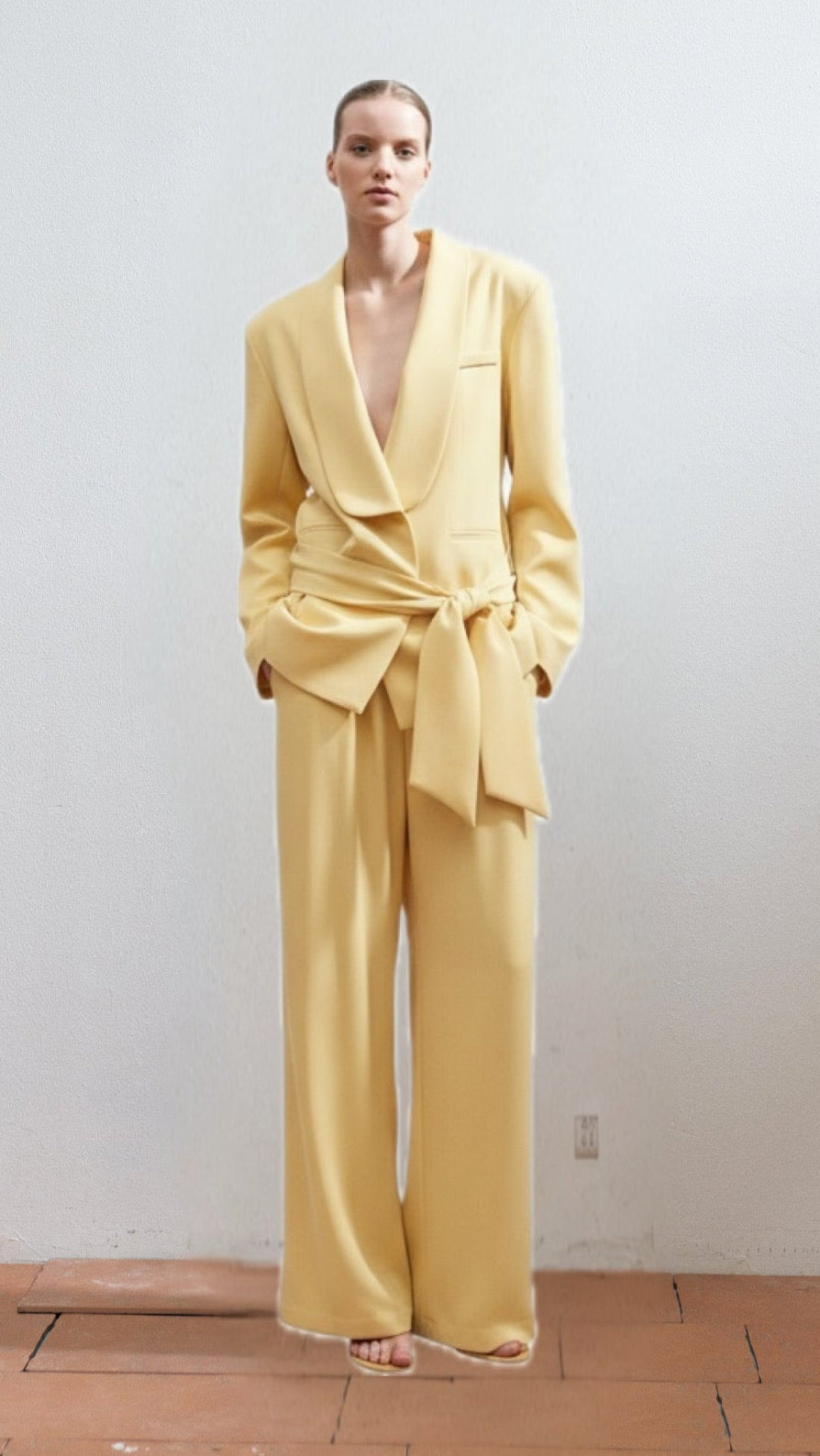 Lumina - Σακάκι με Ζώνη και Βάτες Παστέλ Κίτρινο